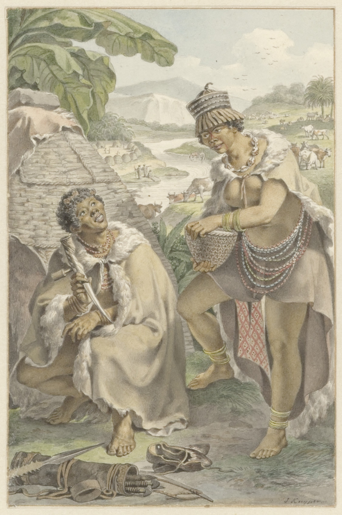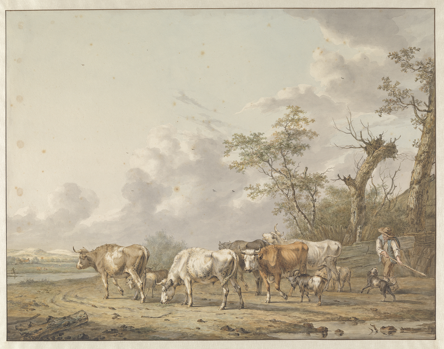 Eene kudde rundvee door eenen herder voortgedreven