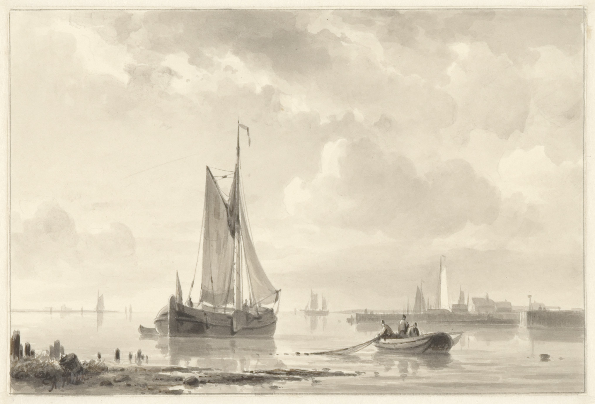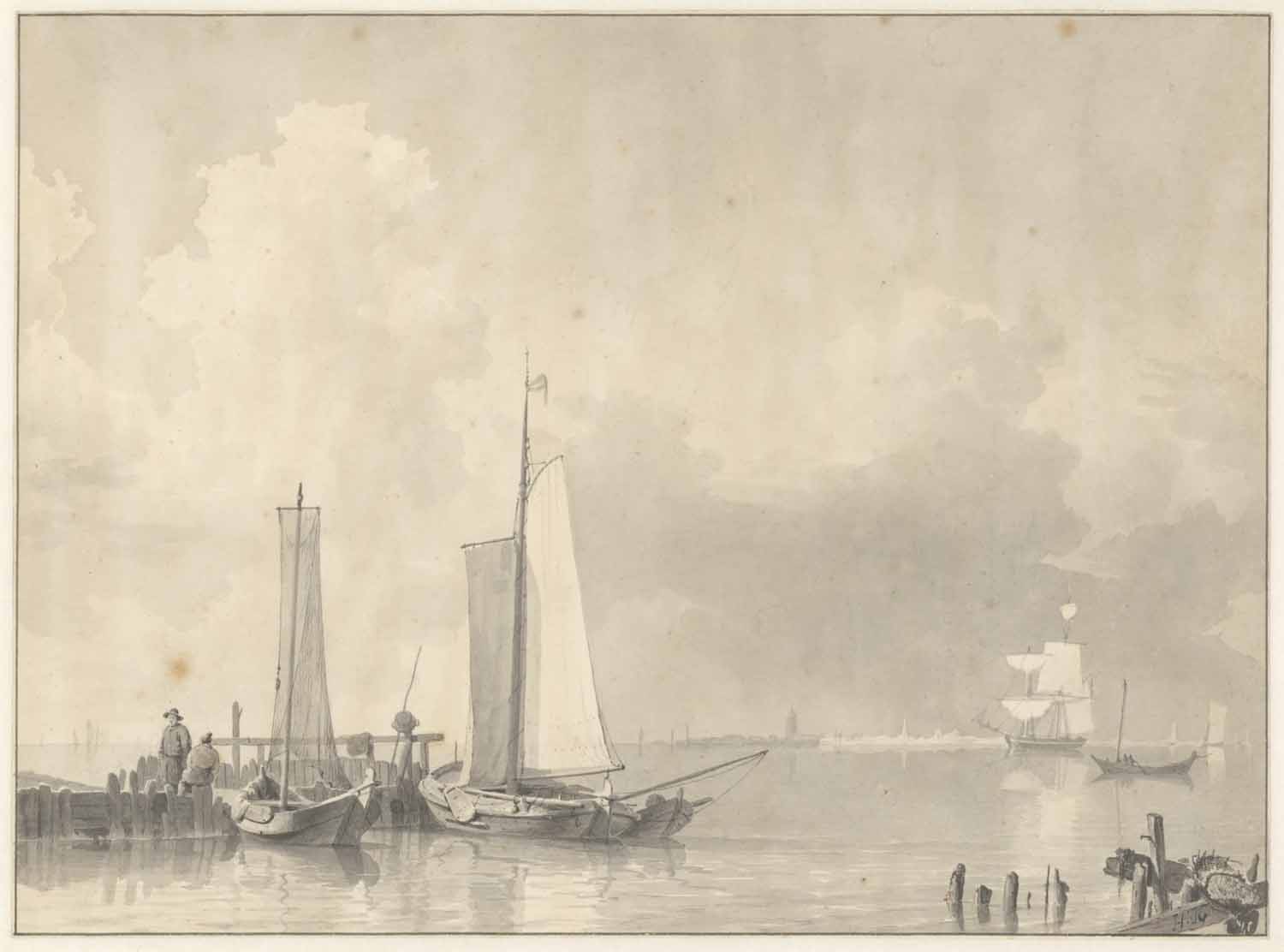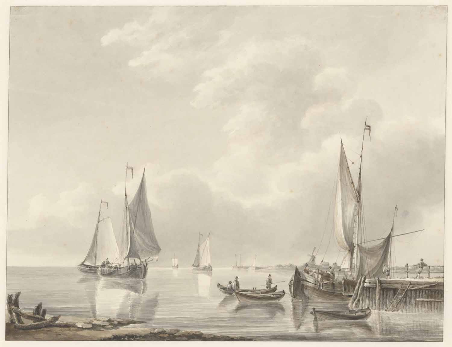 Een stil water met schepen