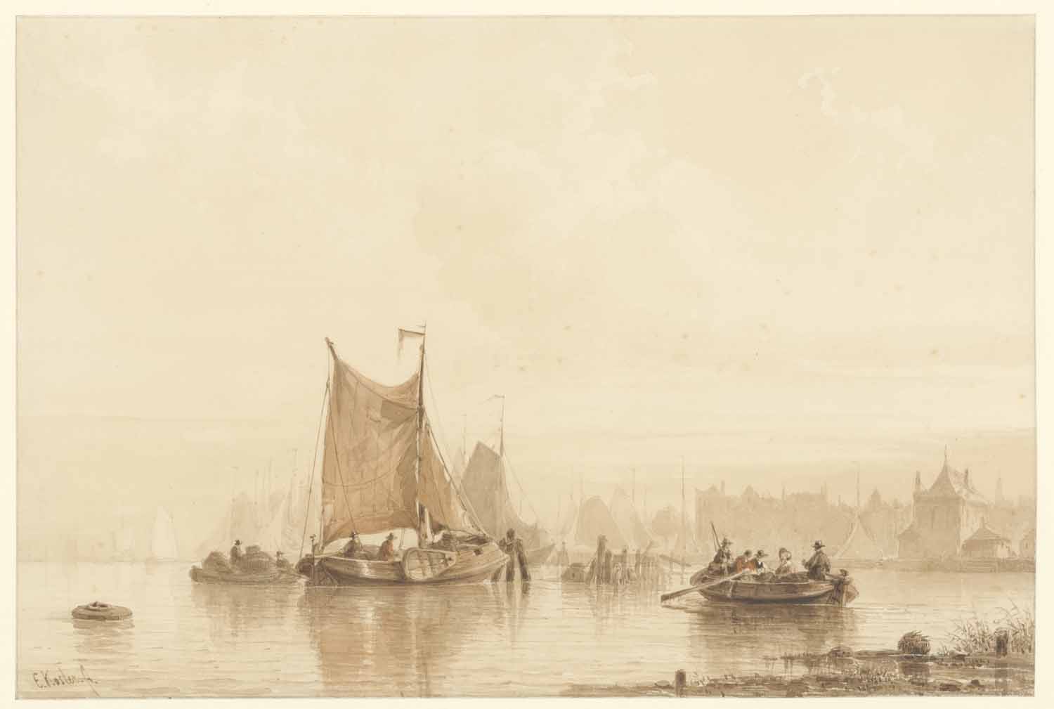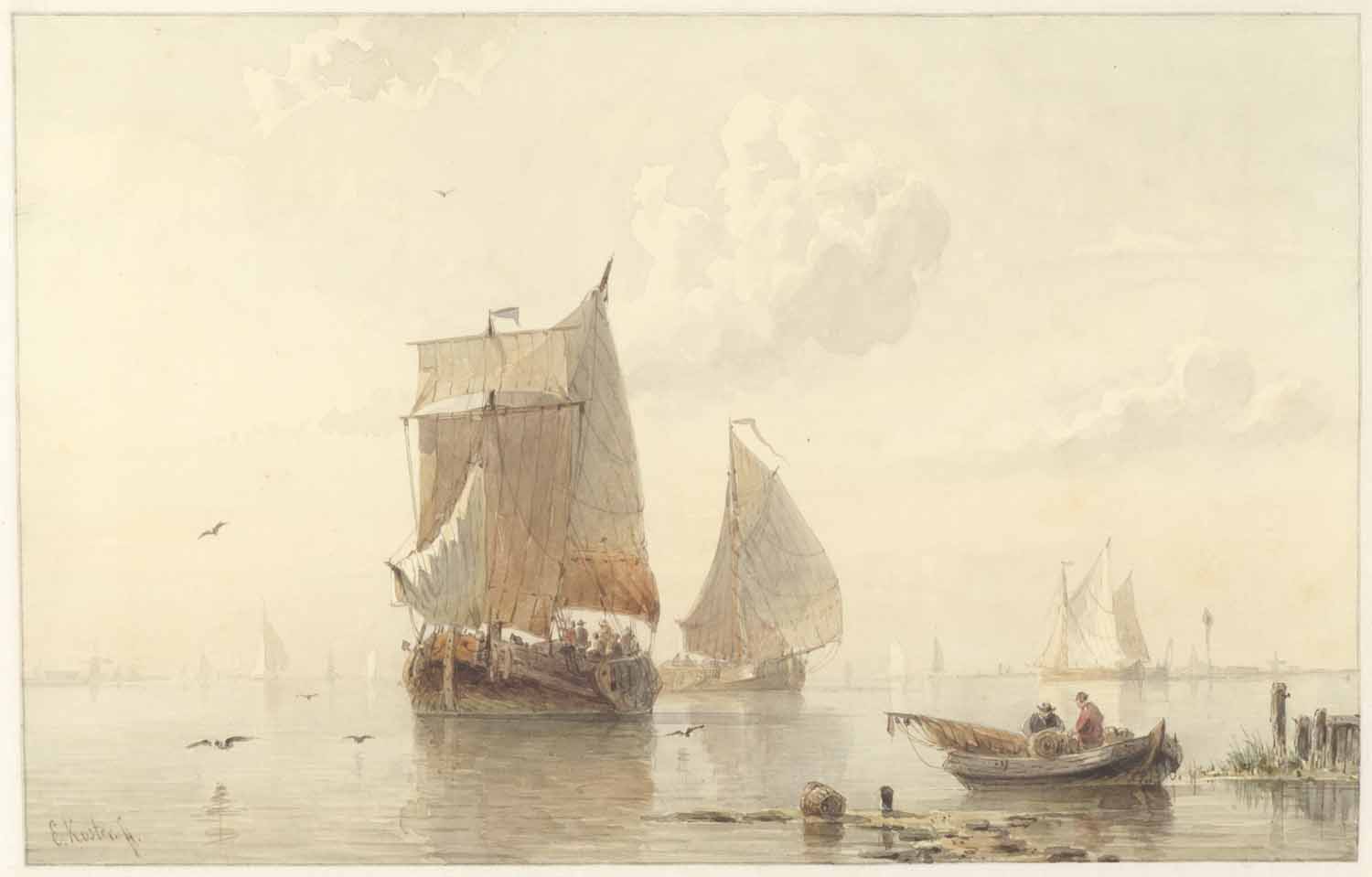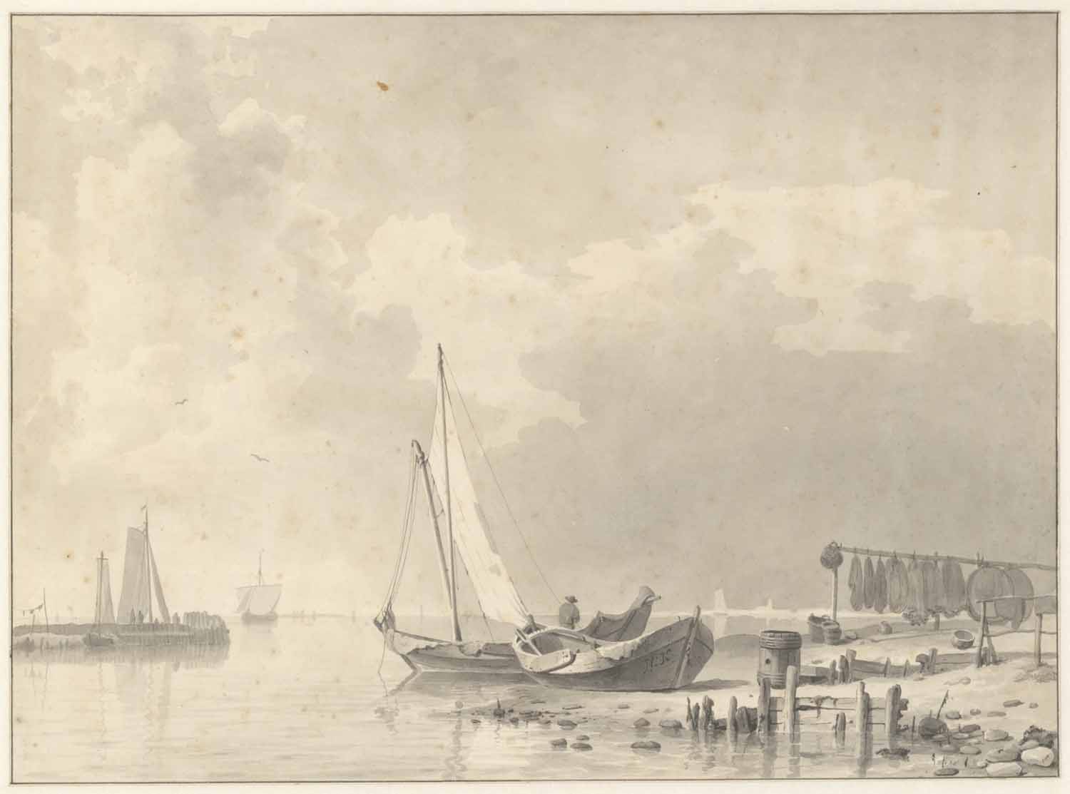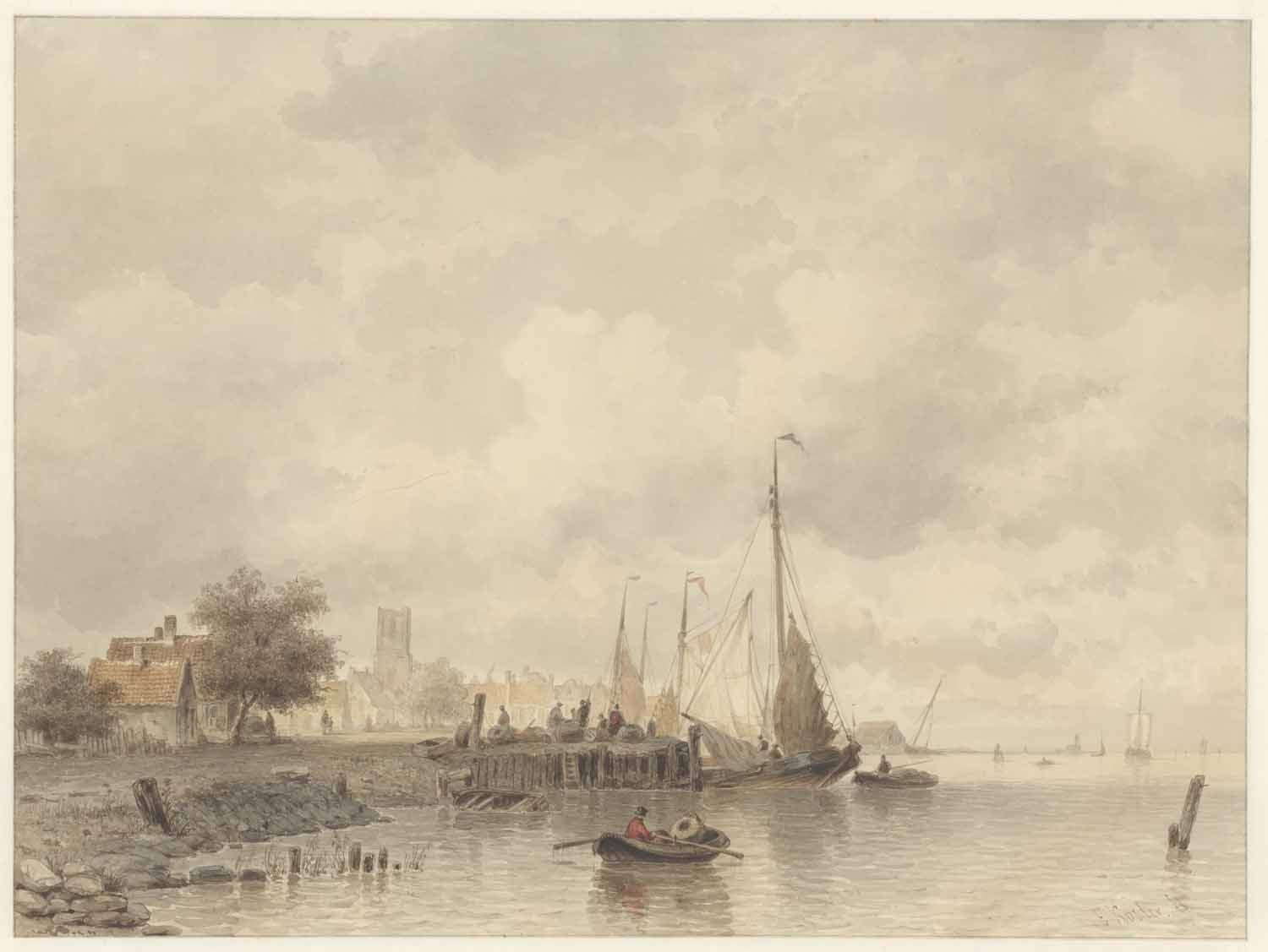 Een stil water met schepen