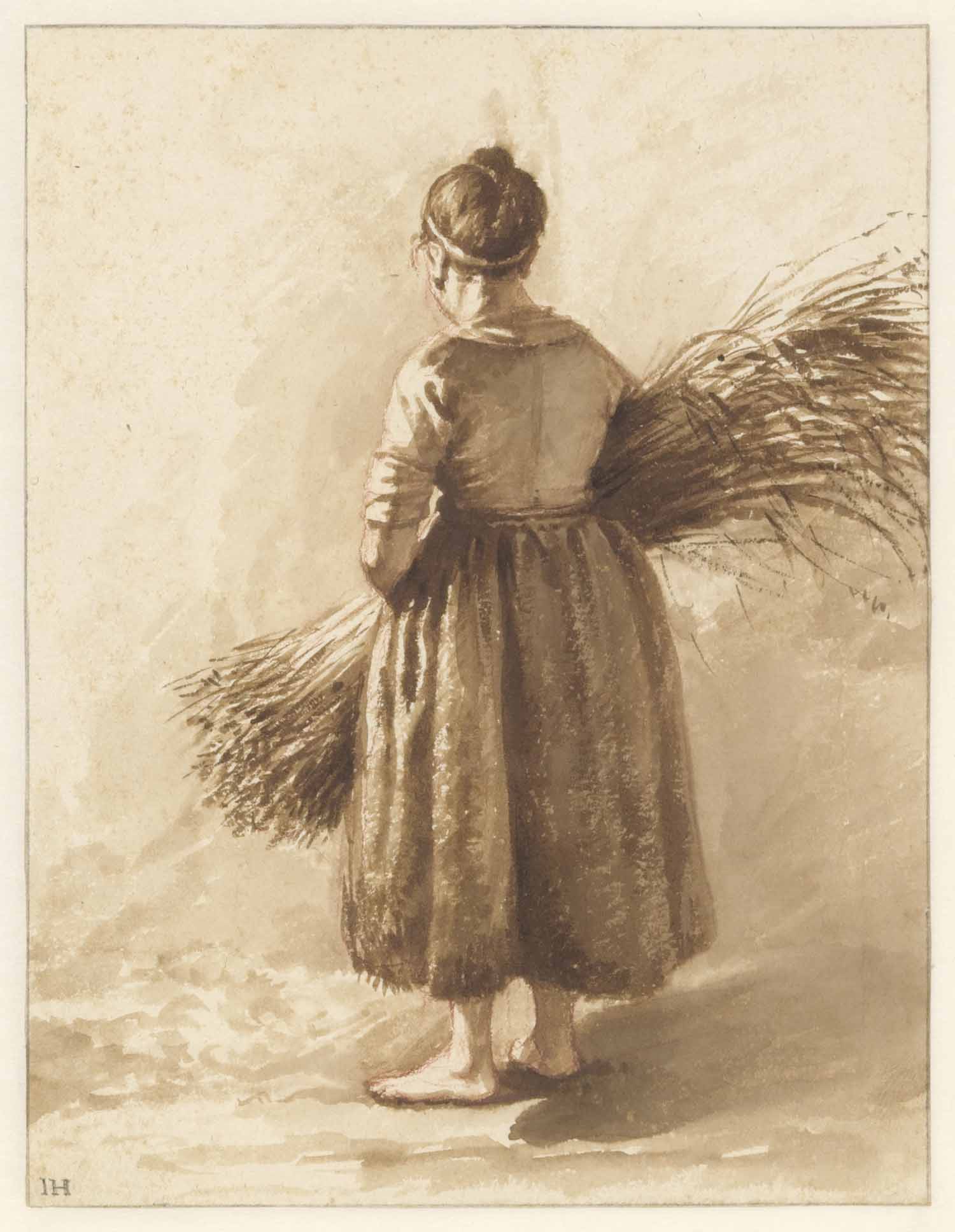 Een meisje met een takkenbos