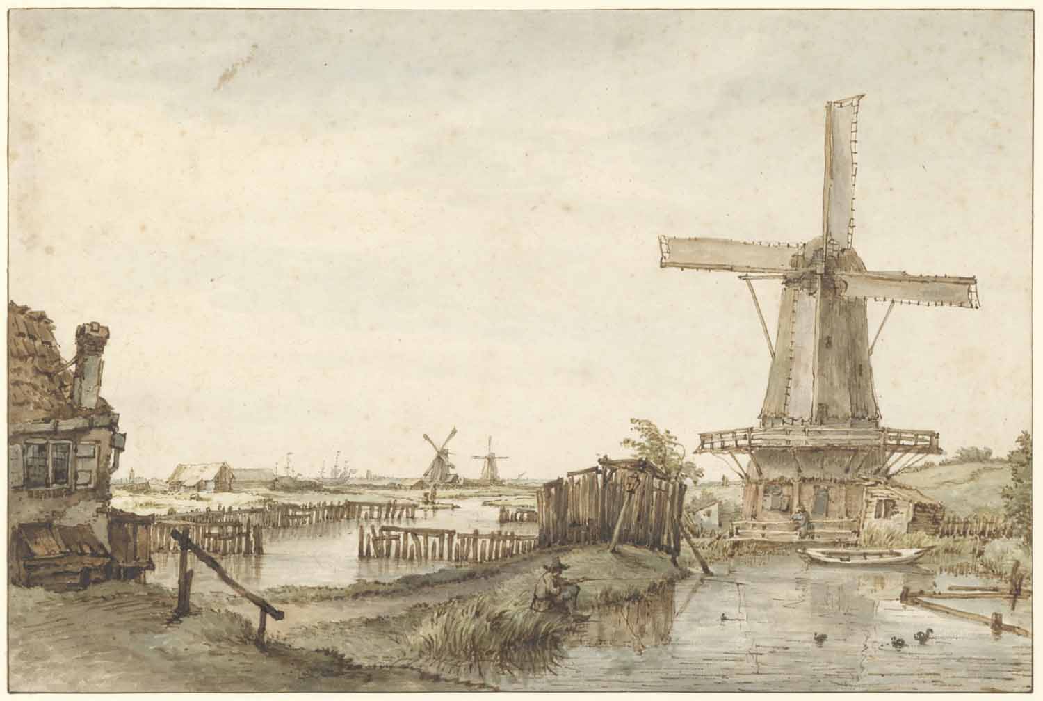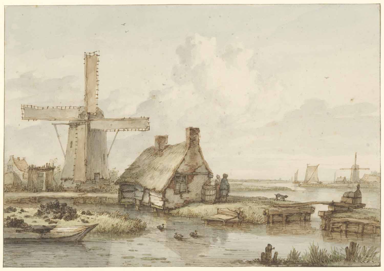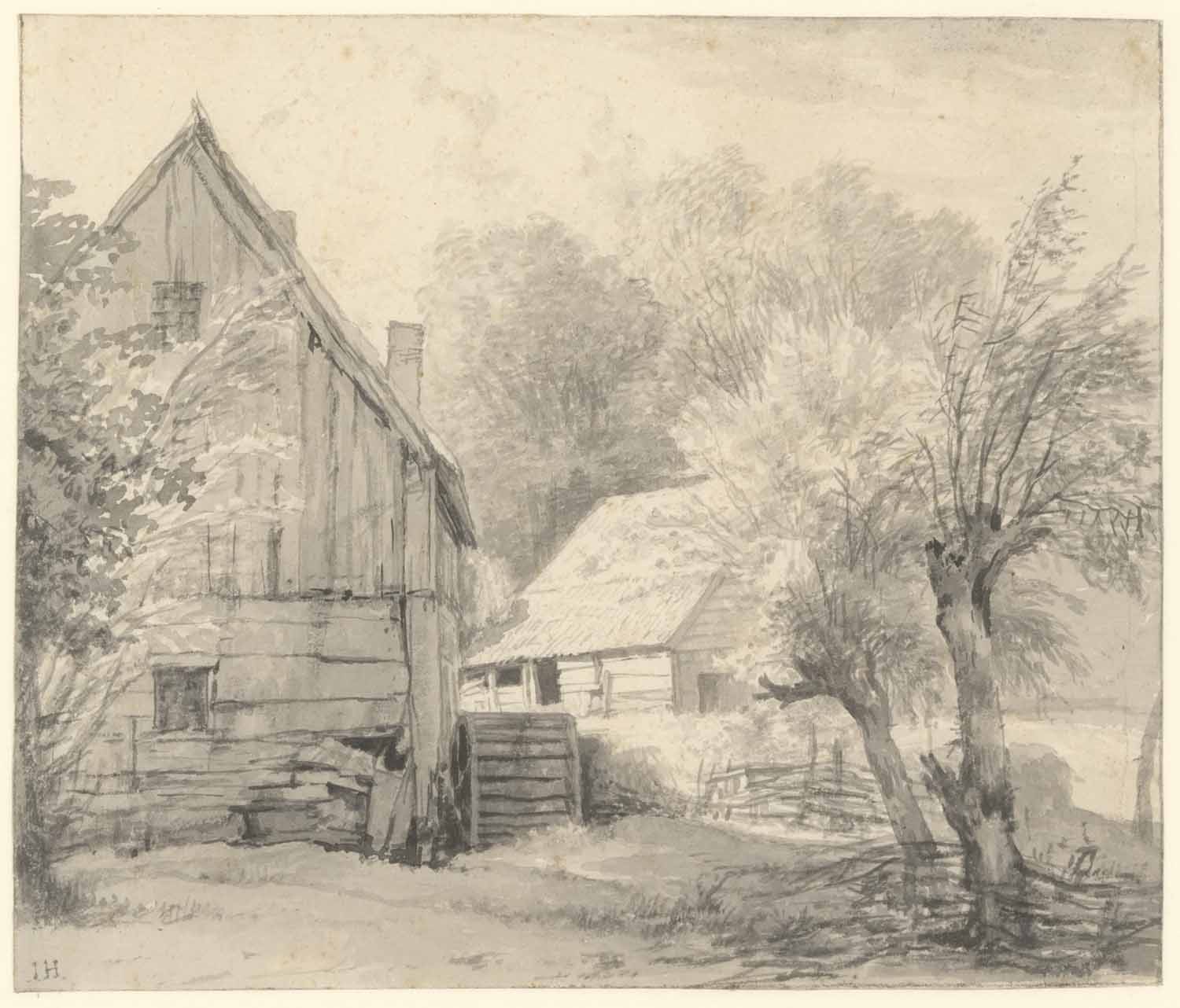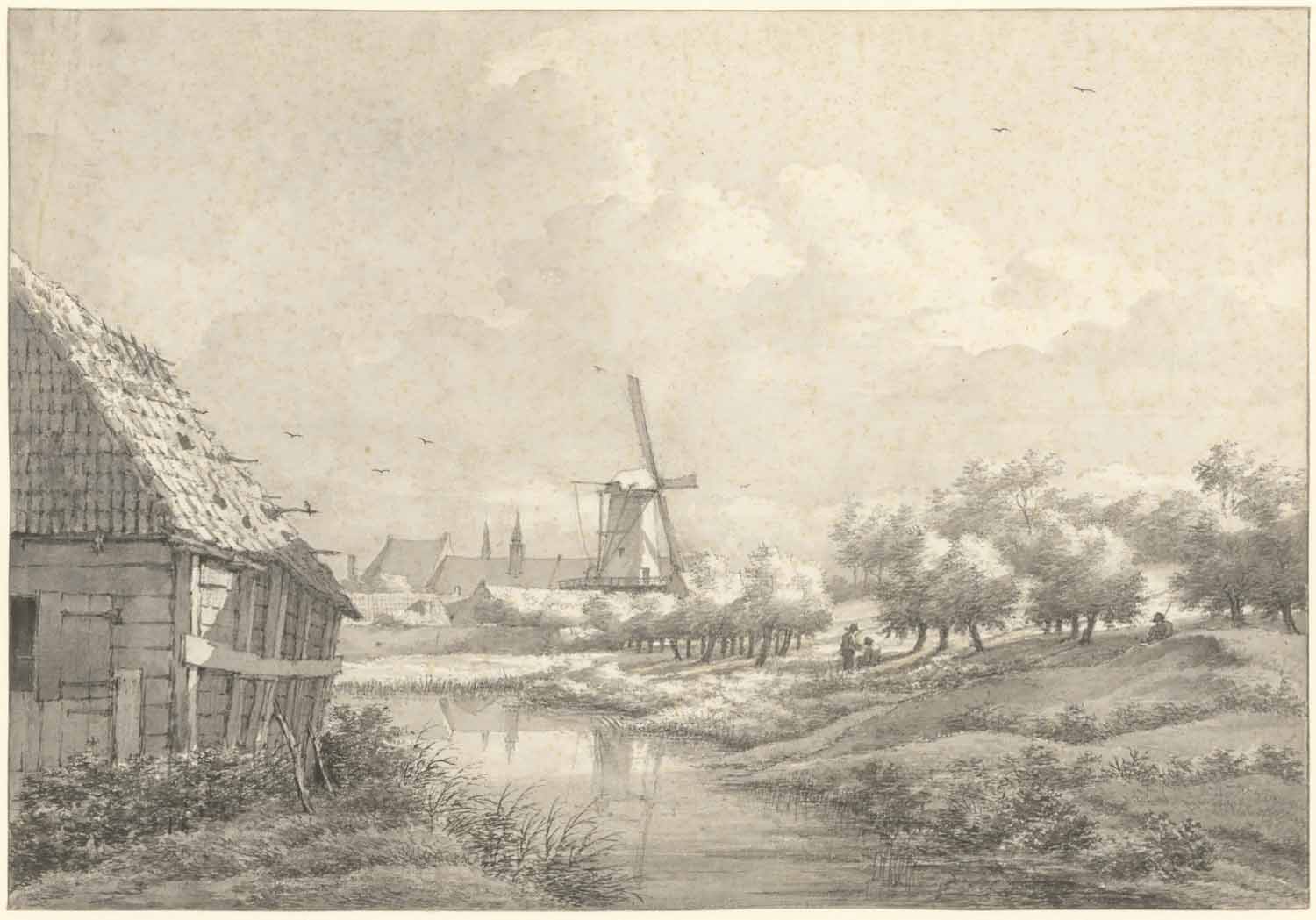 Een molen en eene boerenwoning aan het water