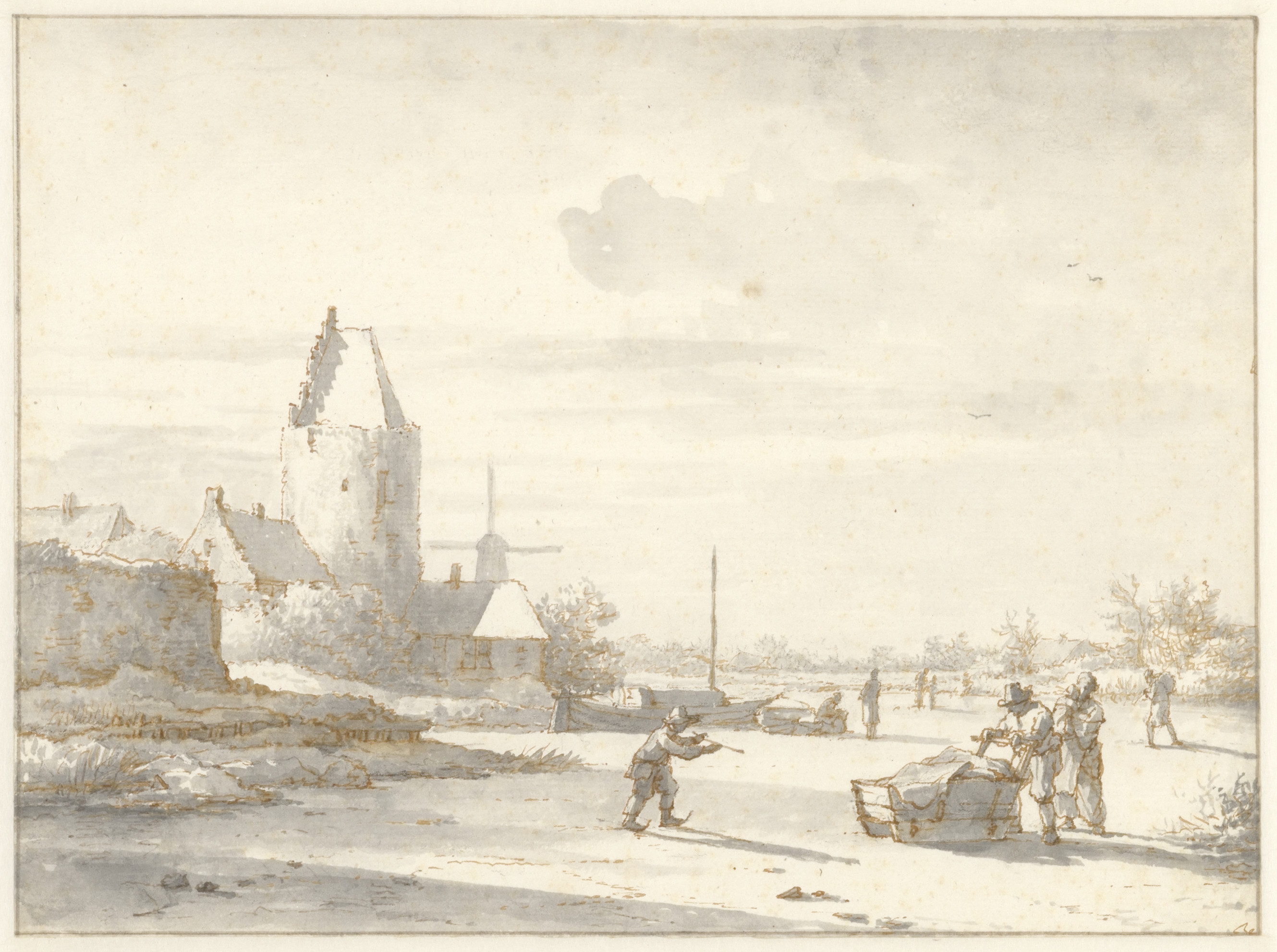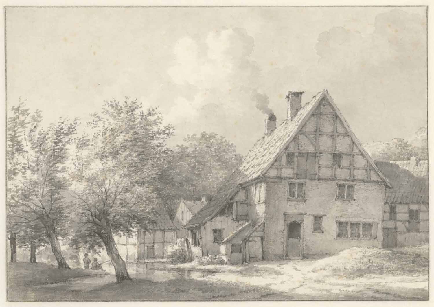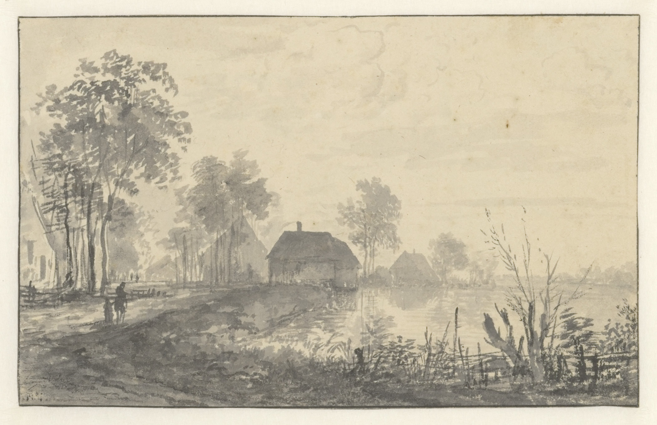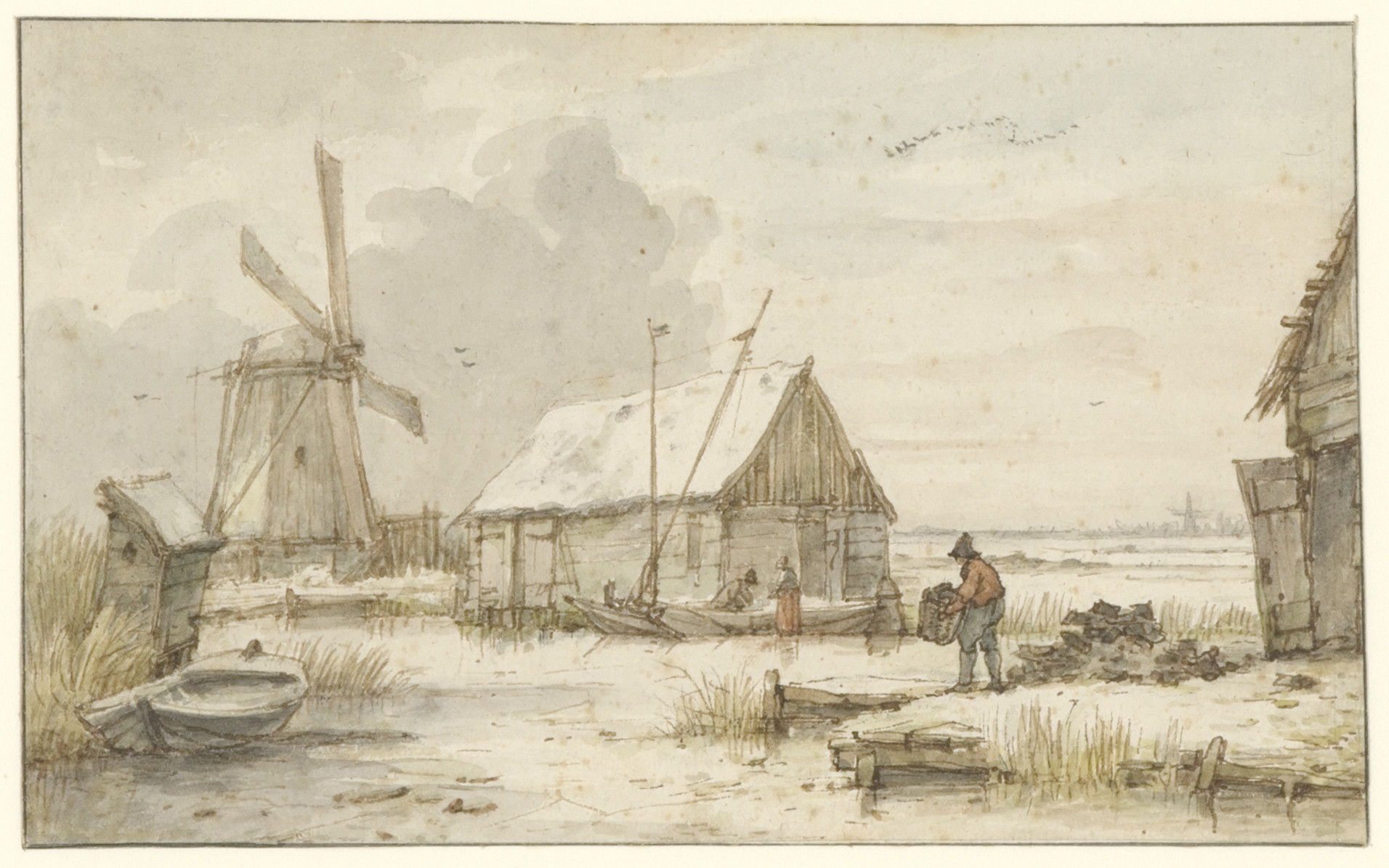 Een molen en eene boerenwoning aan het water