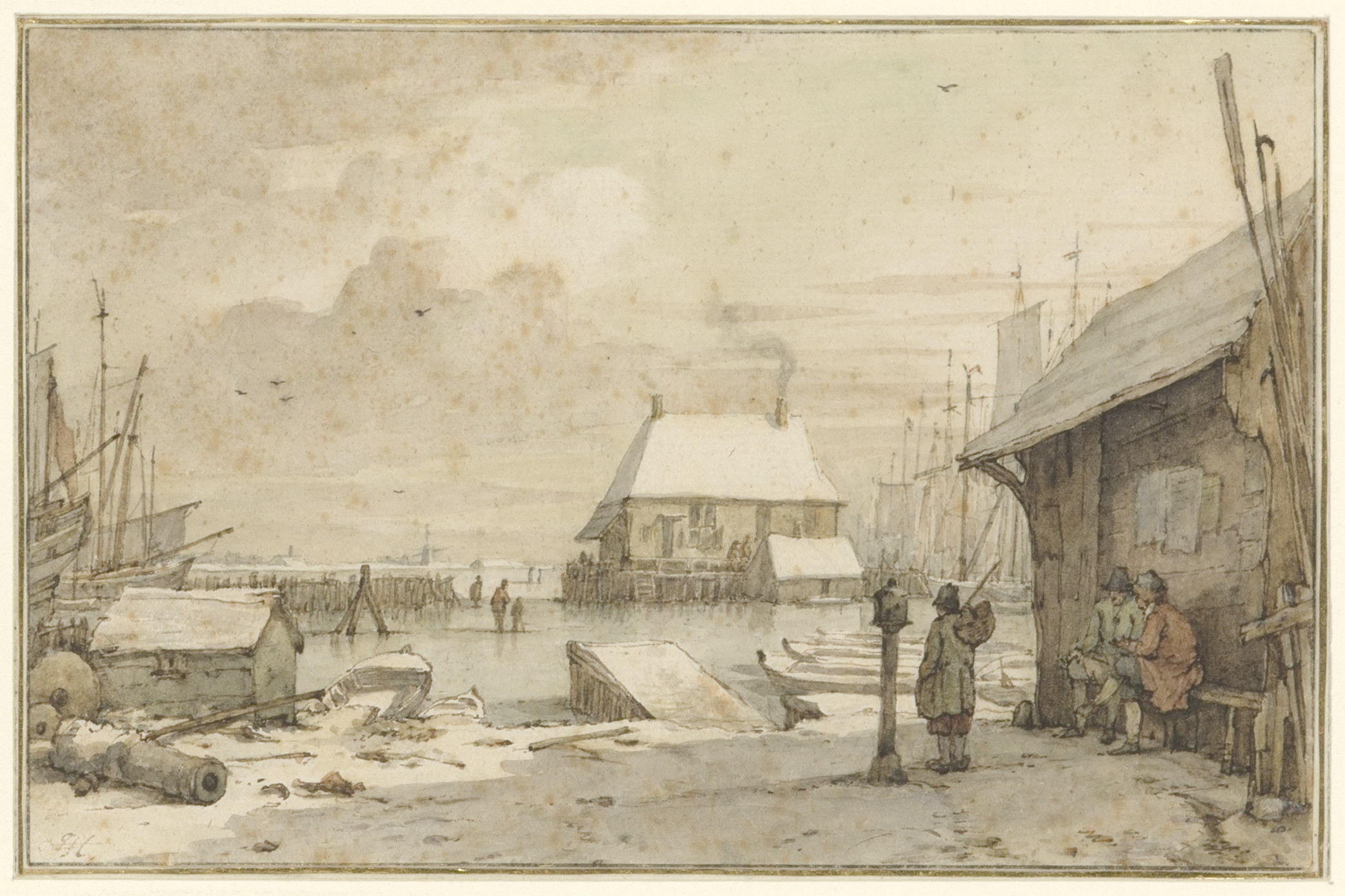 Eene stadsvest bij winter