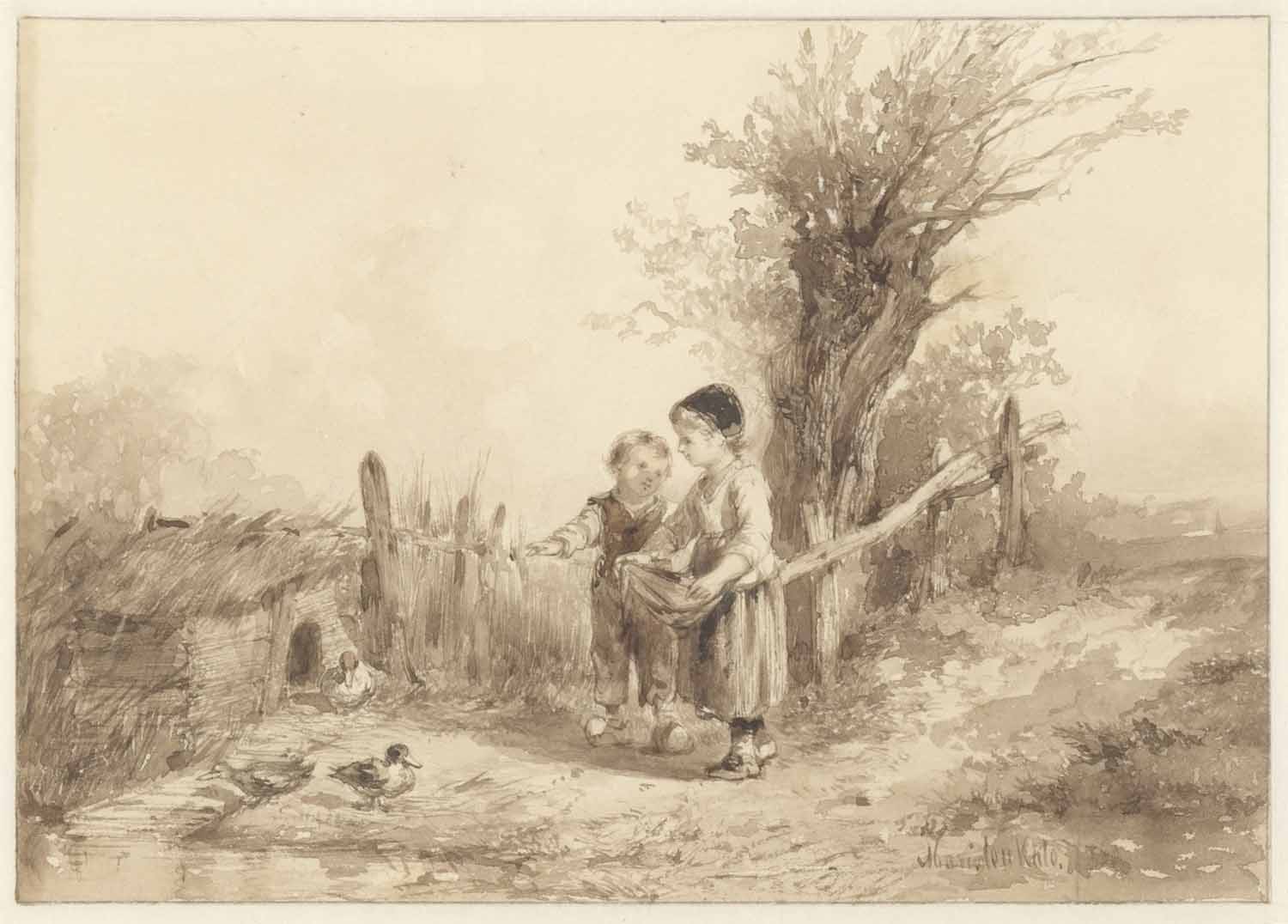 Twee kinderen bij een eendenhok