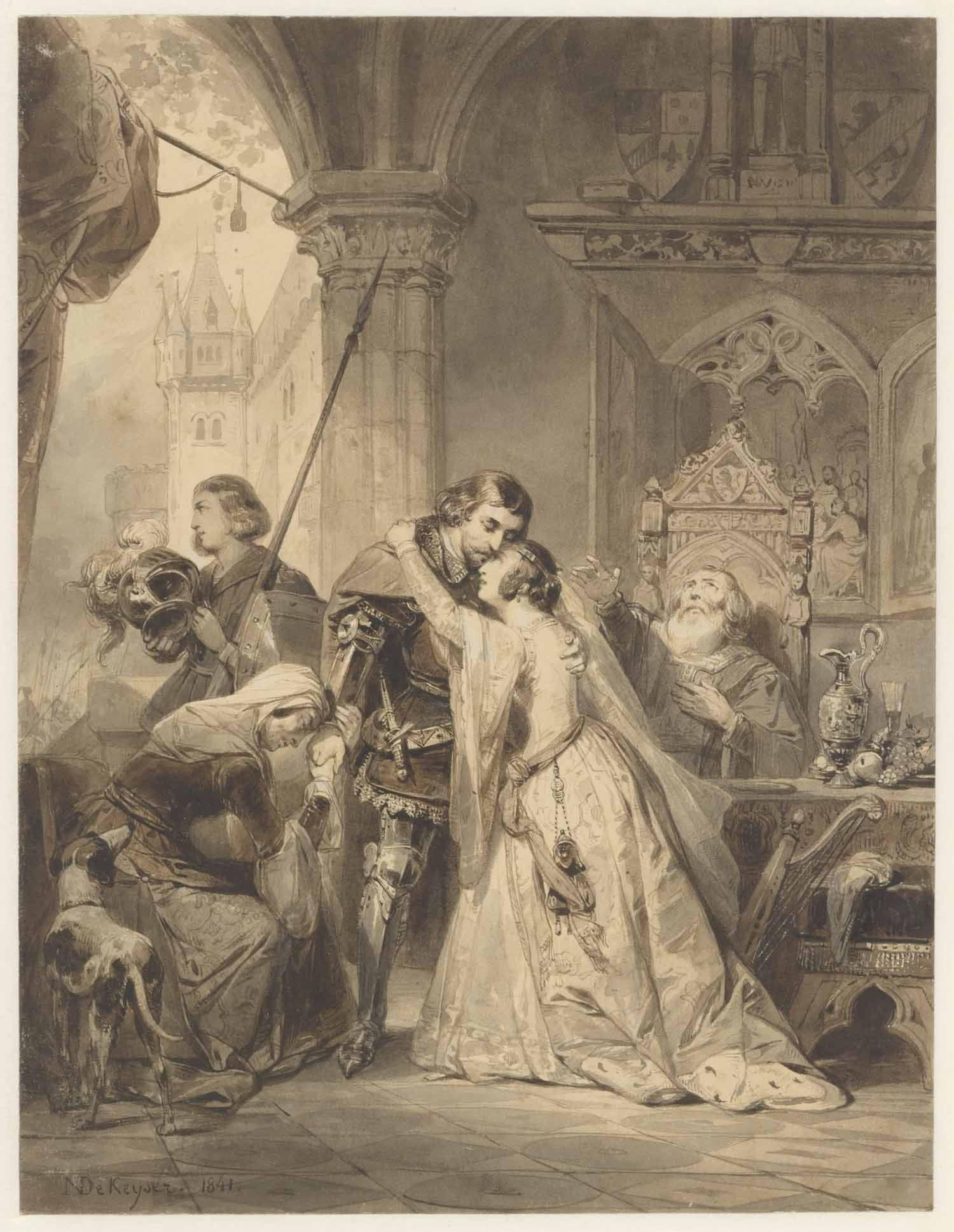 Een ridder afscheid nemende van zijne betrekkingen