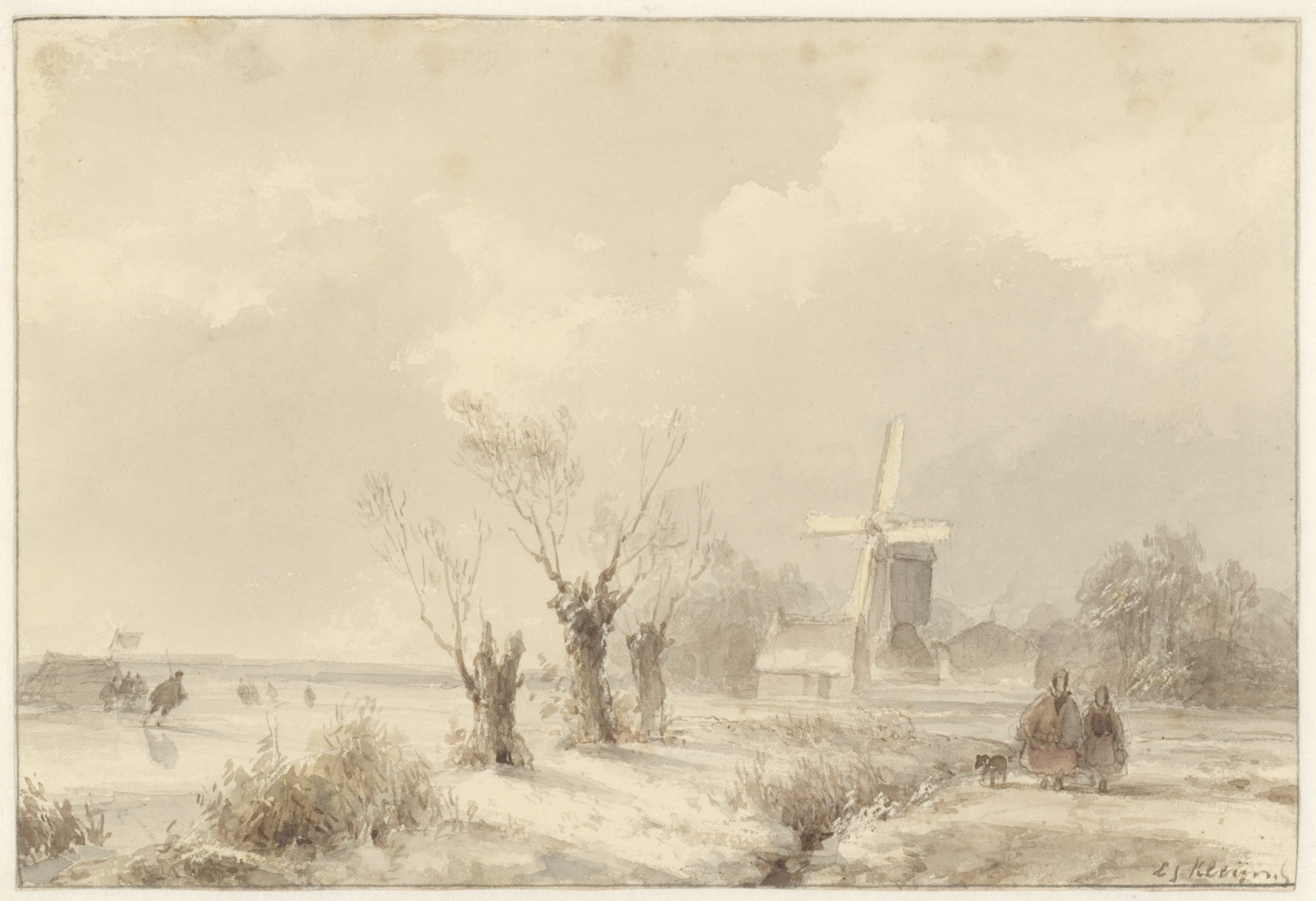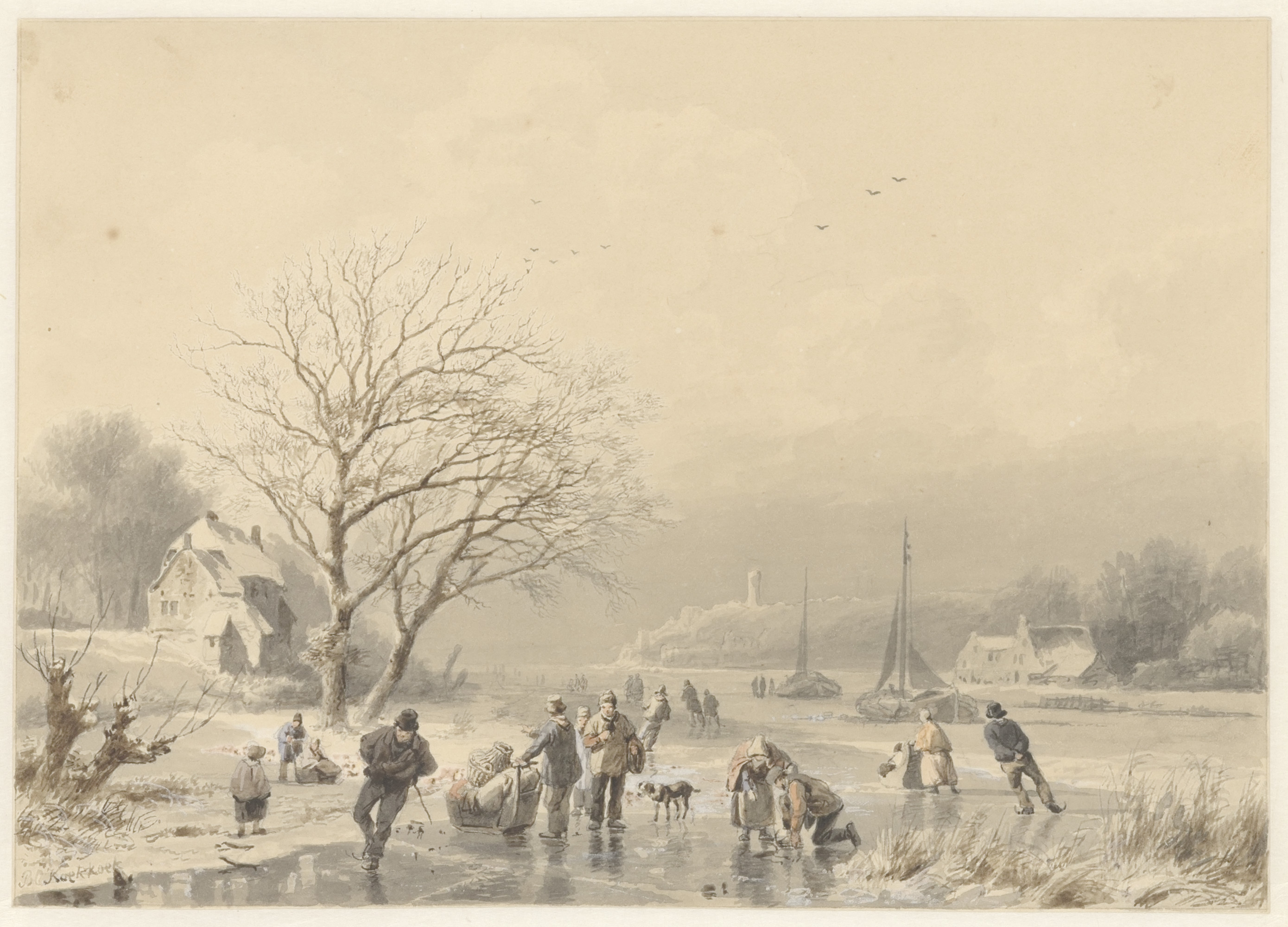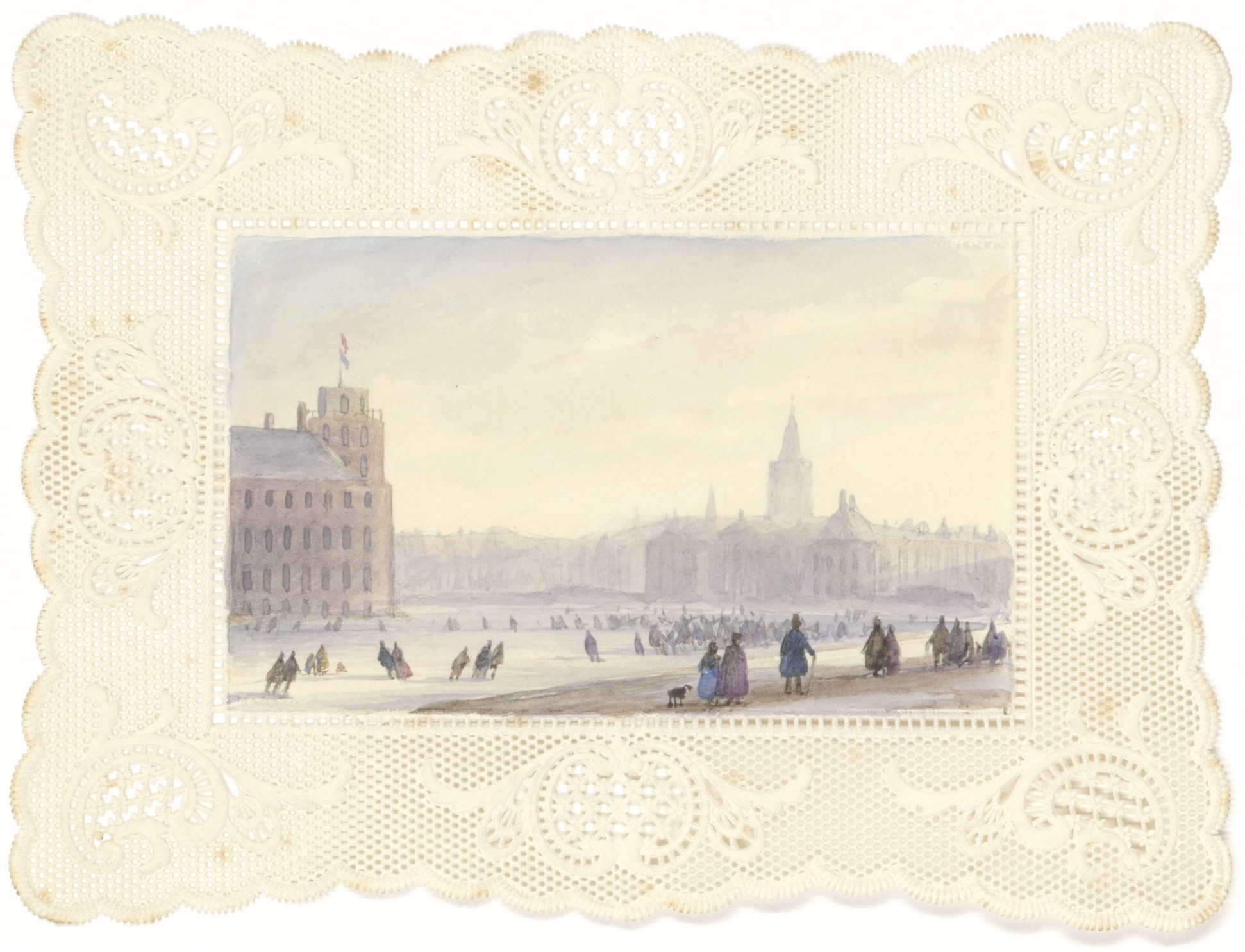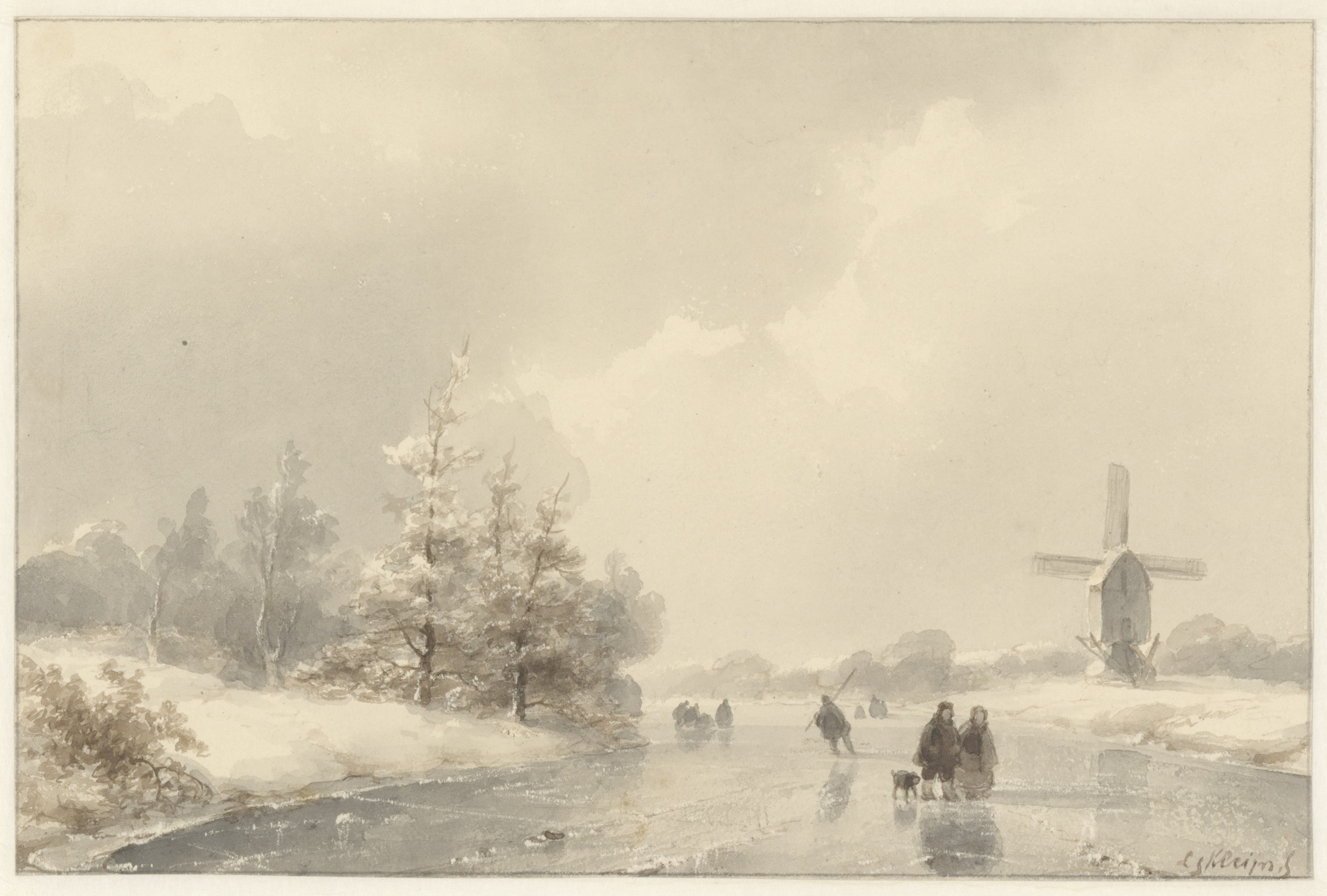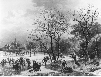 Eene bevrozene rivier, rijk gestoffeerd met schaatse...