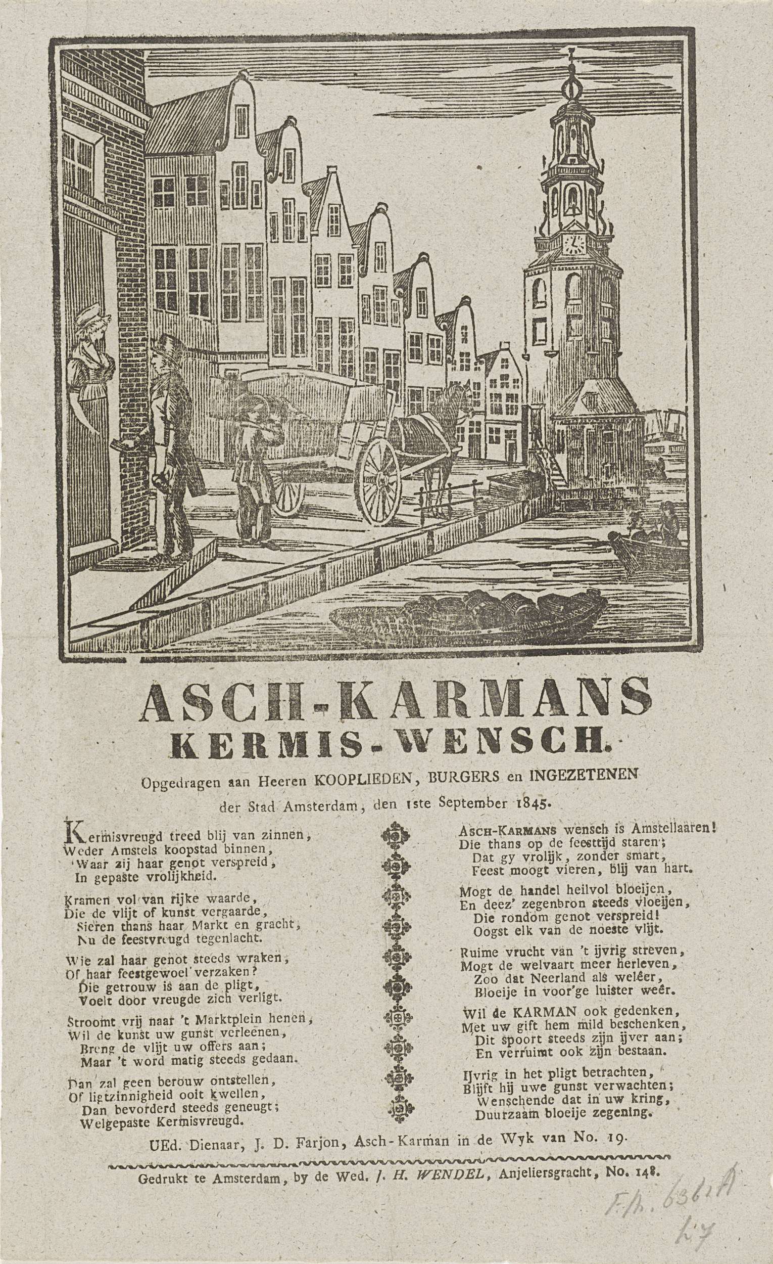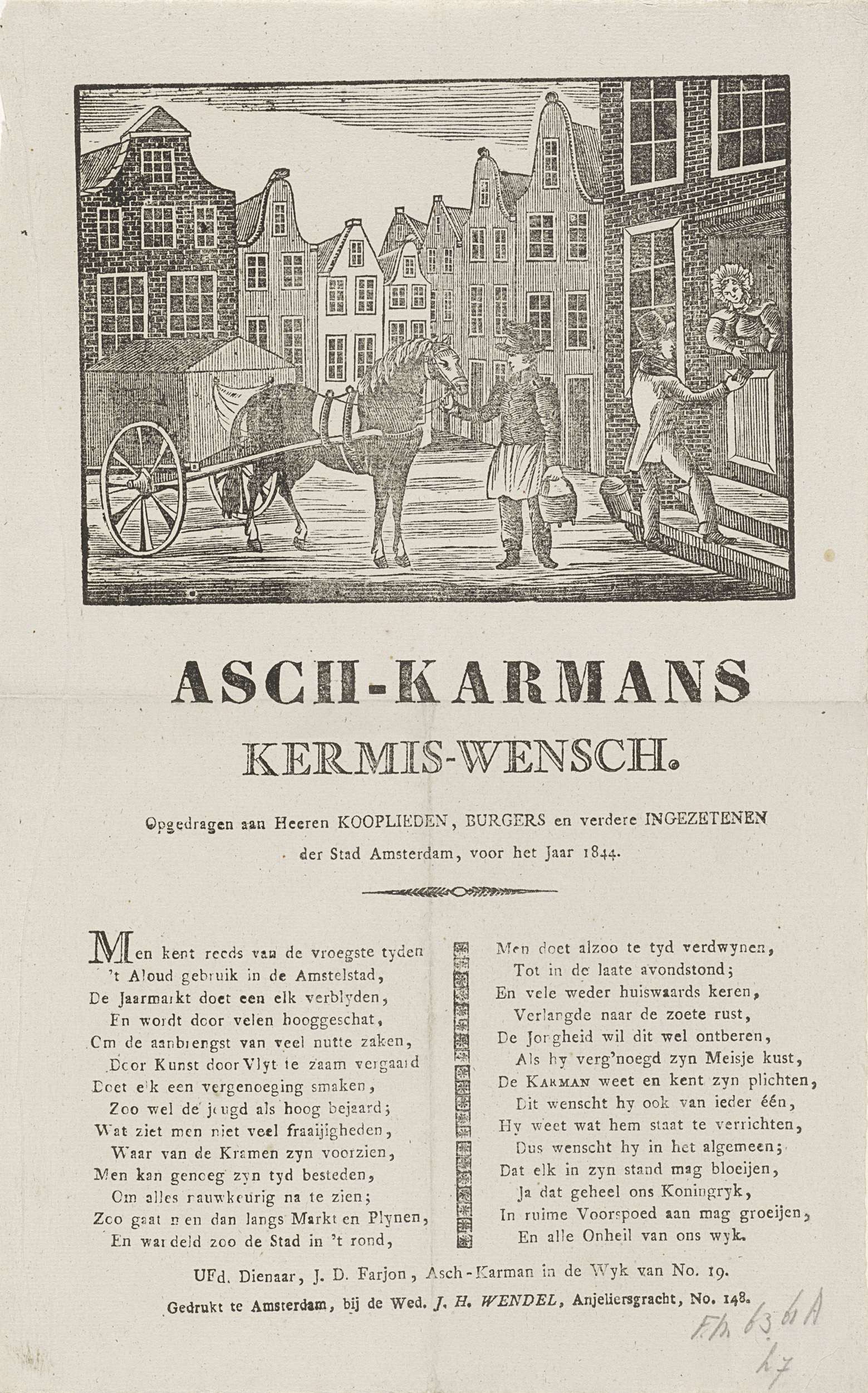 vermeld op object Wendel, weduwe J.H.