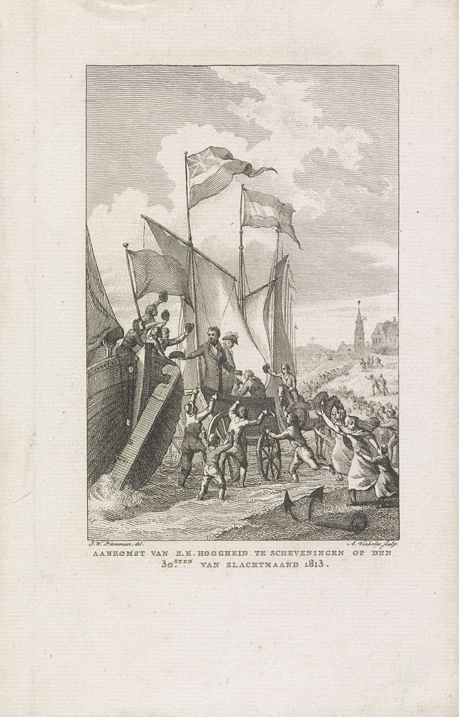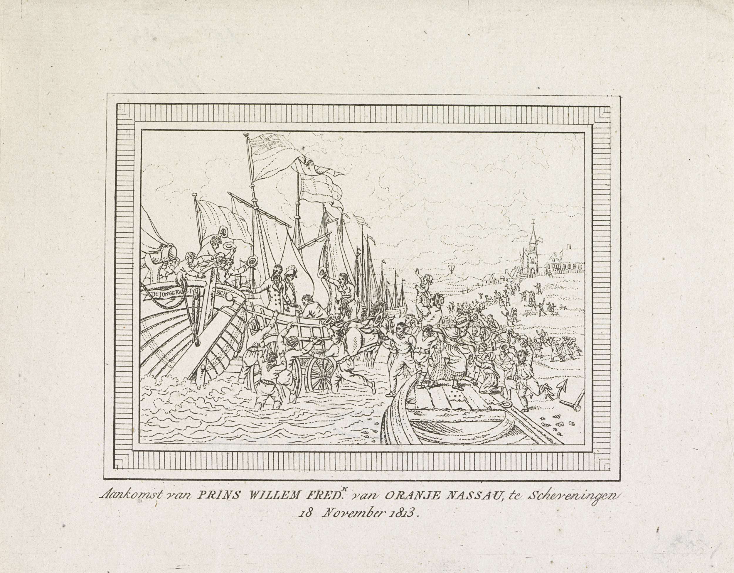 Aankomst van de prins van Oranje te Scheveningen, 1813