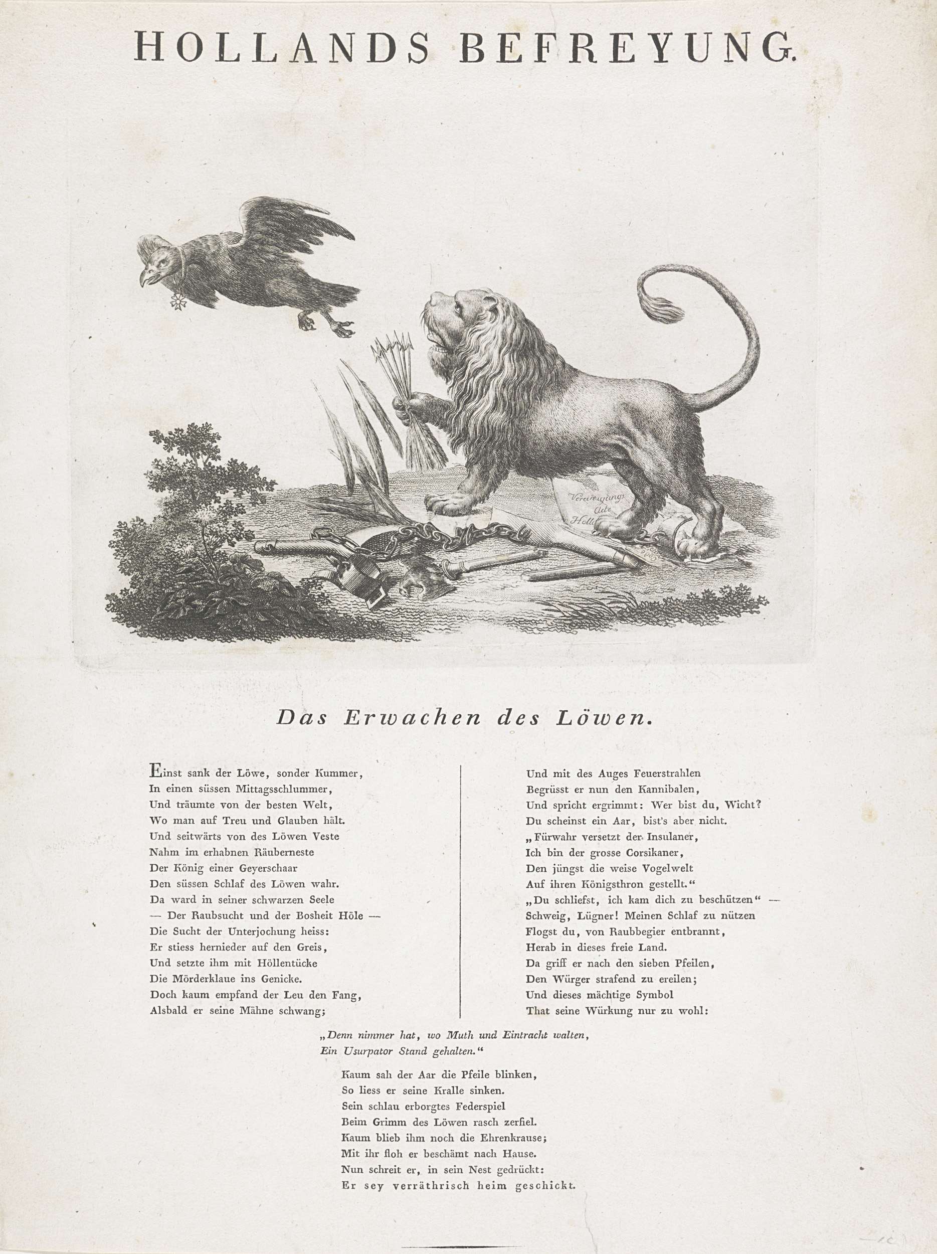 Kozak bevrijdt de geketende Nederlandse Leeuw, 1813