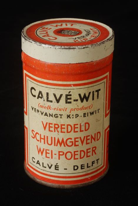 Klein rond blik met los deksel, Calvé veredeld wei-p...