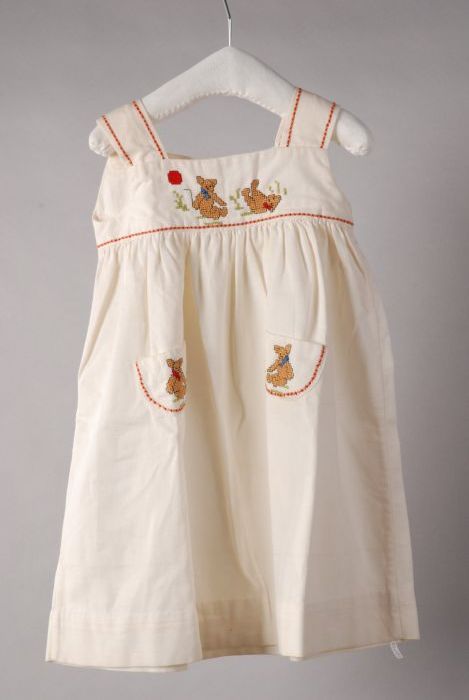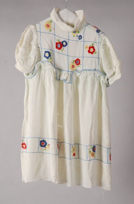 Meisjesjurk van wit katoen, geborduurd in kruissteek...