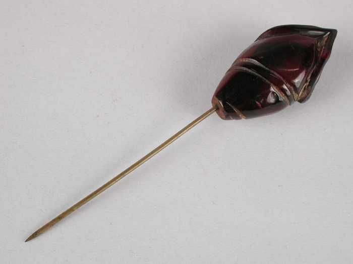 Hoedenspeld van roodbruin kunststof op een korte kop...