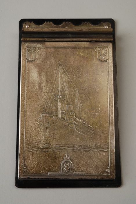 Notitieblokhouder Rotterdamsche Lloyd, zwart gelakte...