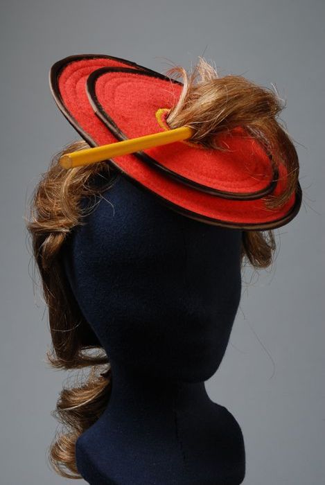 Doorsteekhoed van twee oranje-gele textiele schijven...