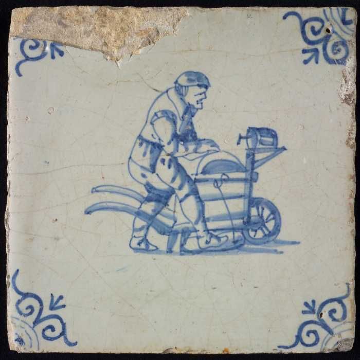 Beroepentegel, blauw met een man achter kruiwagen, h...