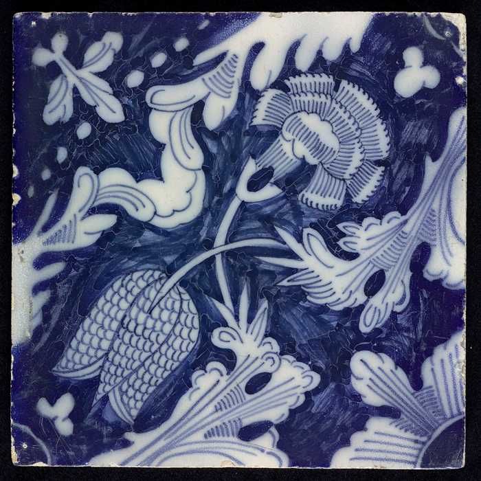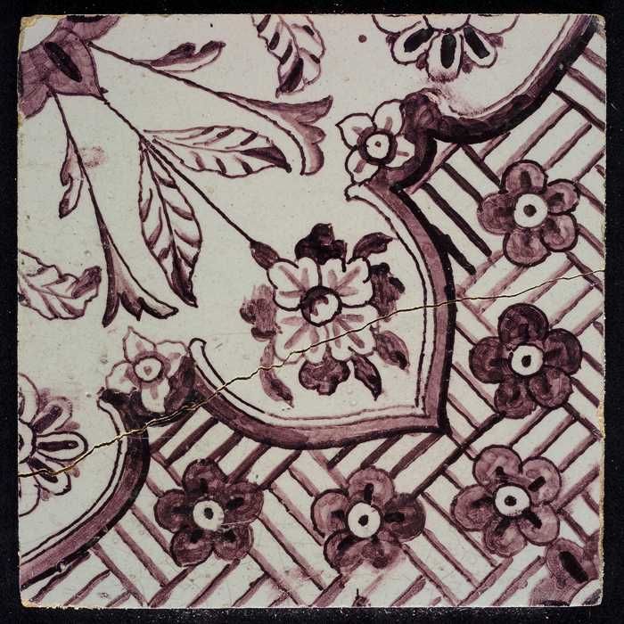 Ornamenttegel met kievitsbloem en anjer, hoekmotief ...