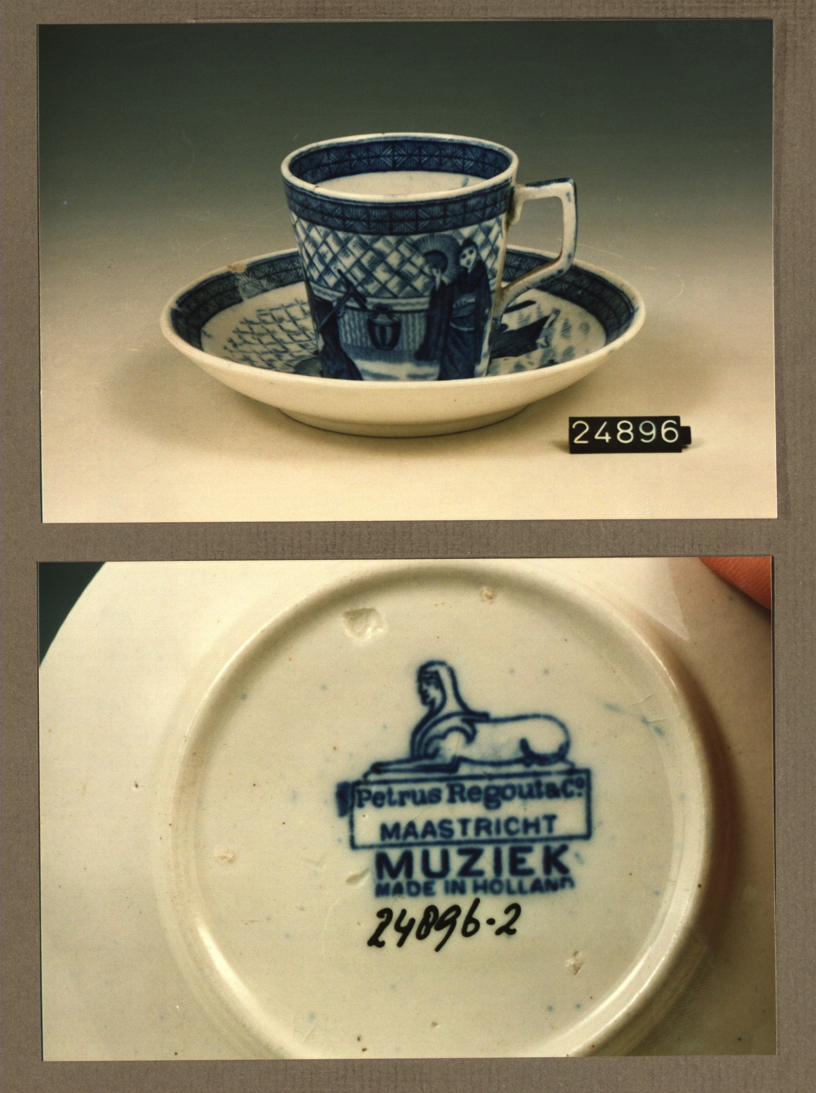 Kop en schotel, model Tulipe met decor Muziek