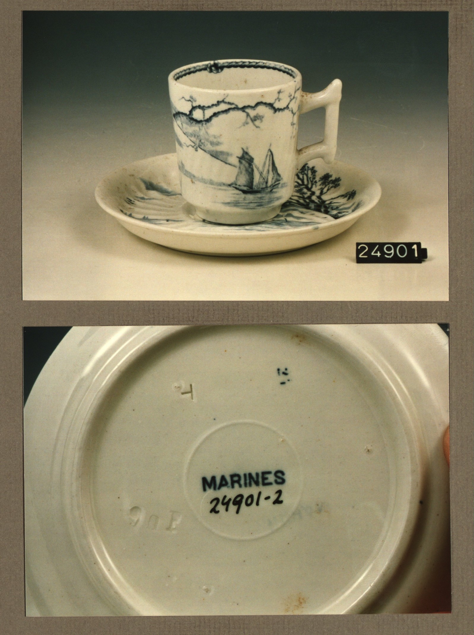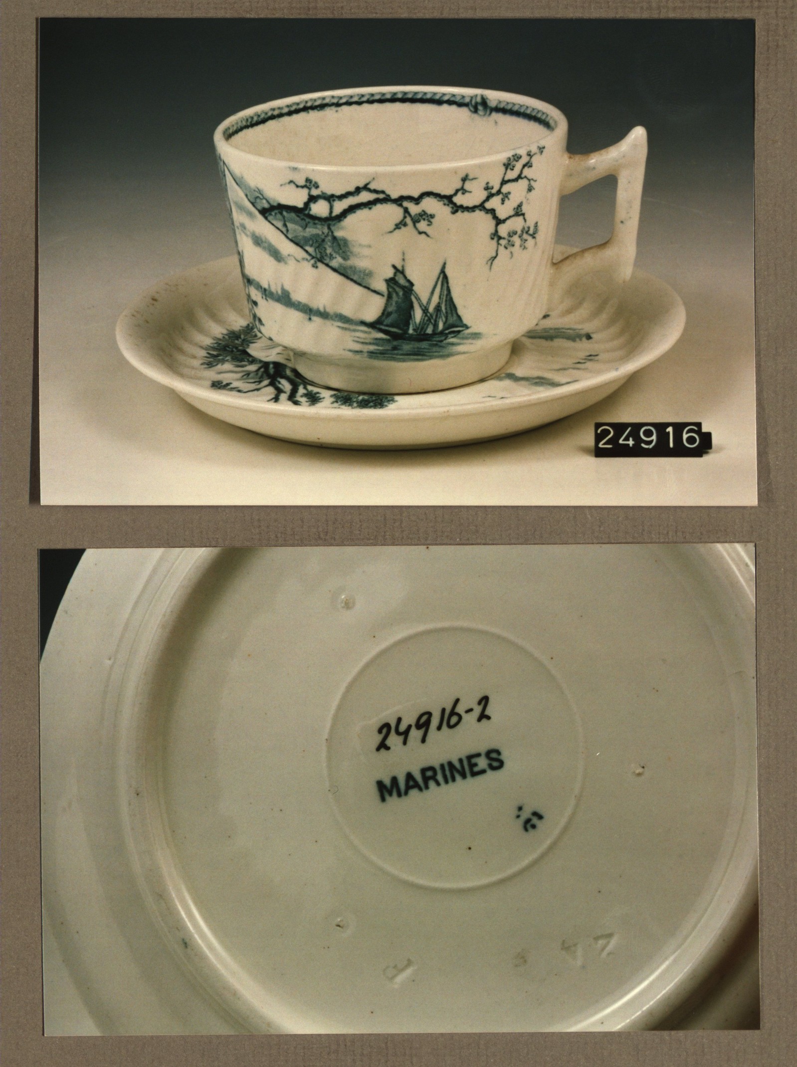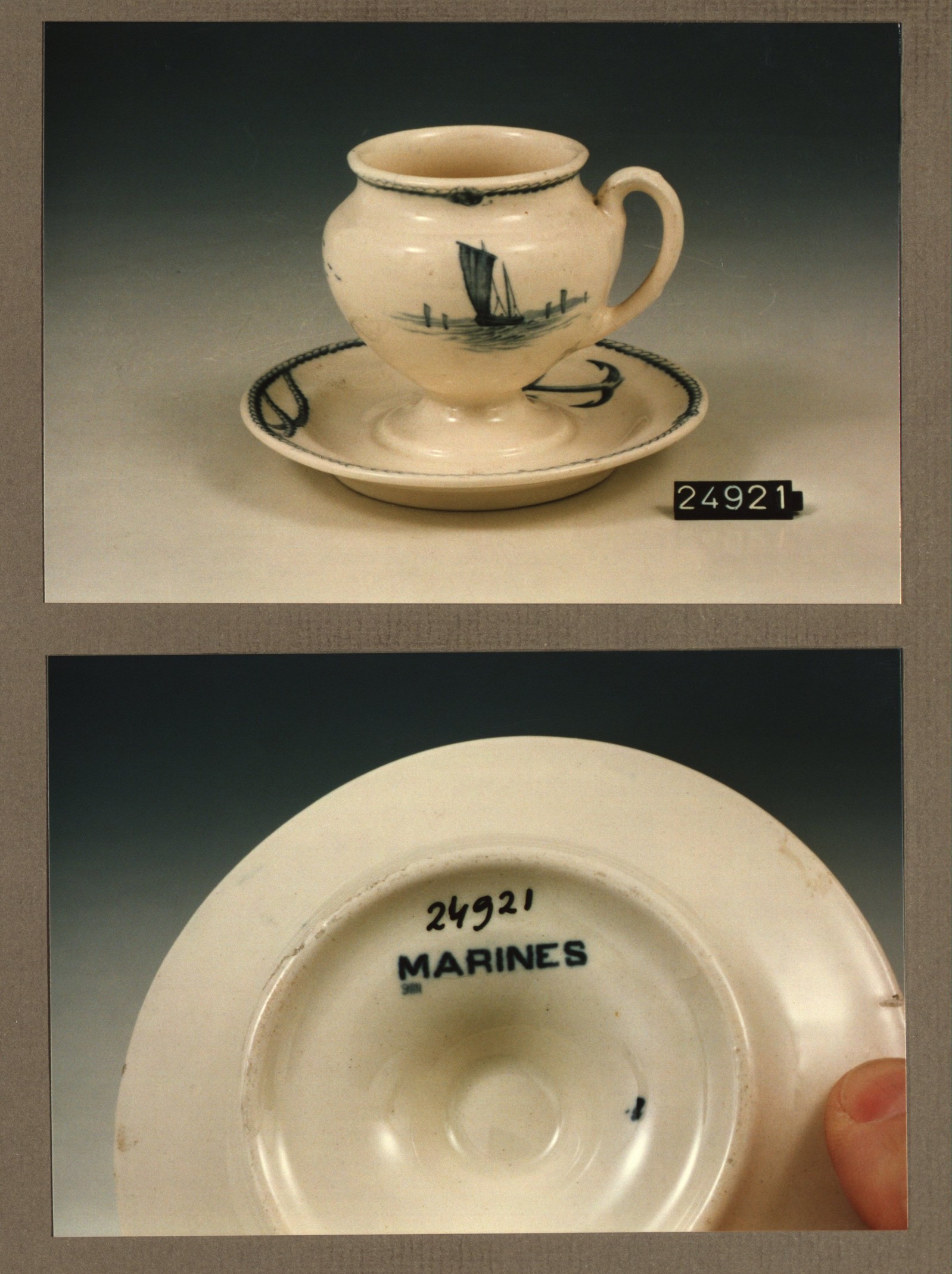 Kop en schotel, model Zweedsch met decor Marines