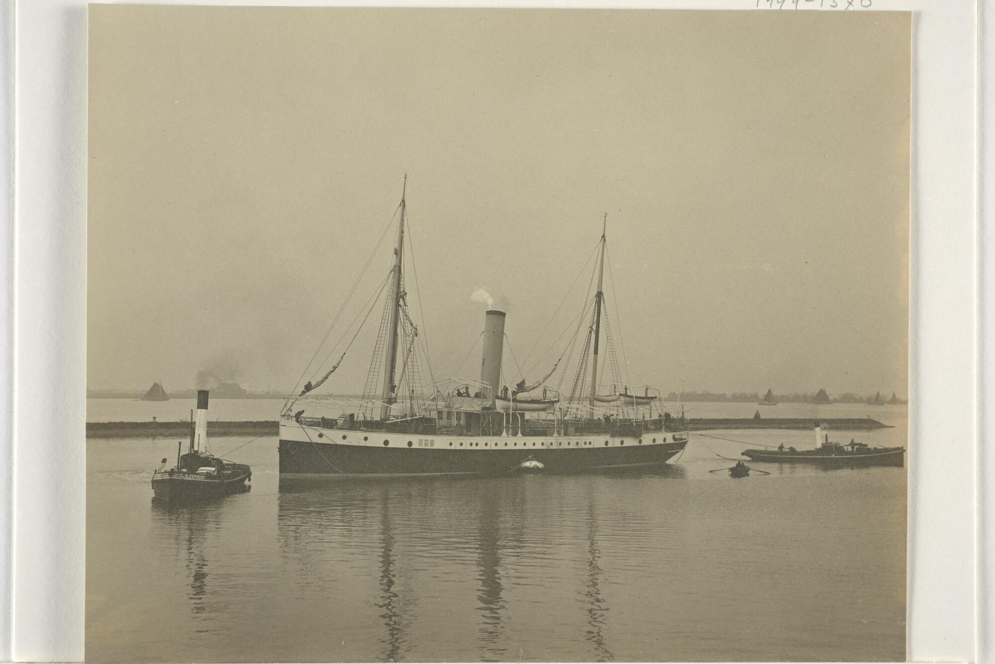 Het ss. 'Brouwer' op sleeptouw door stoomsleepboten ...