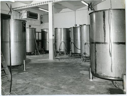 Foto in zwart-wit van tanks voor de extractie van ma...