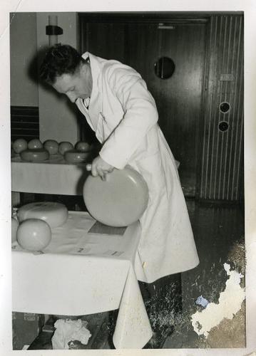 Foto in zwart-wit van een opslag voor Edammer kaas