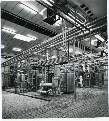 Foto in zwart-wit van een kijkje in de zuivelfabriek...