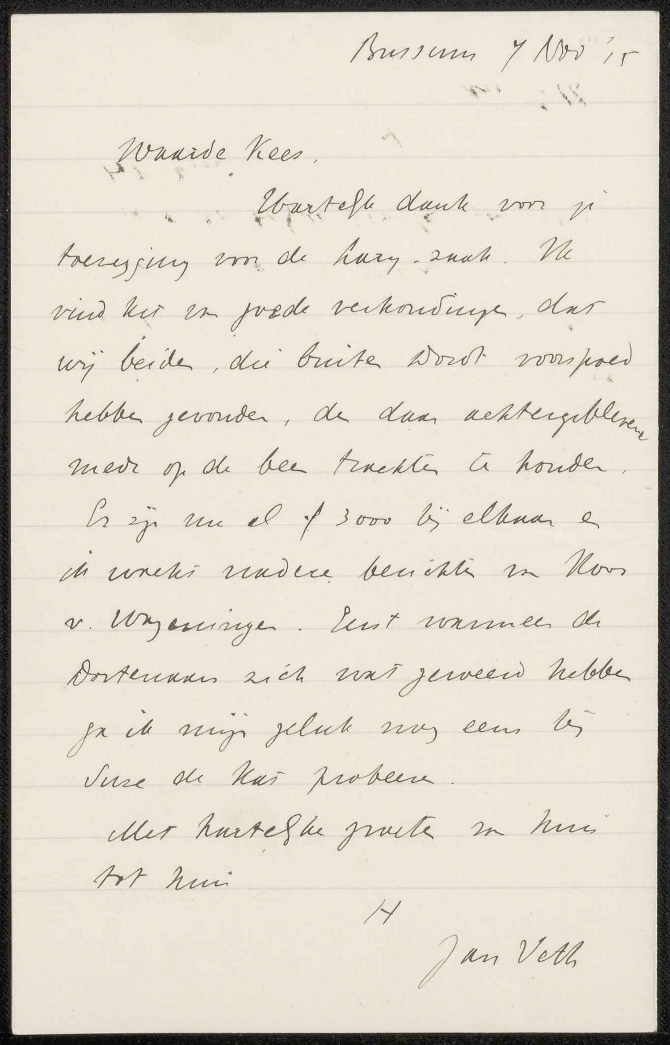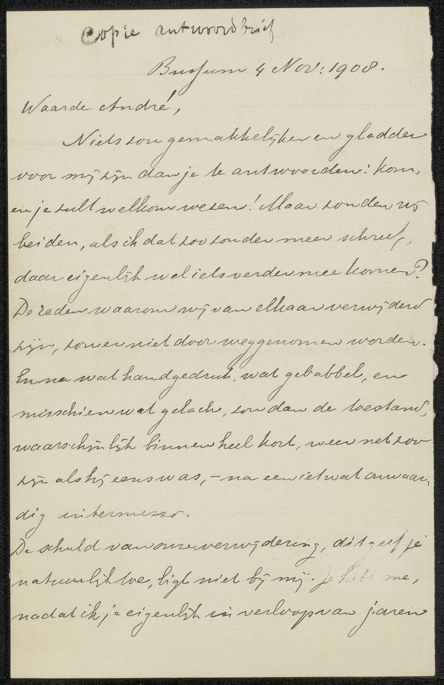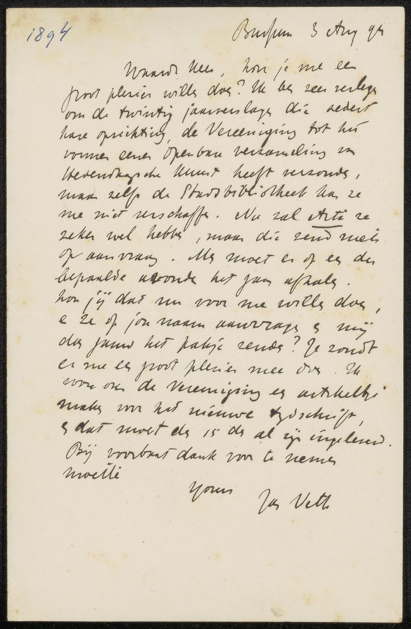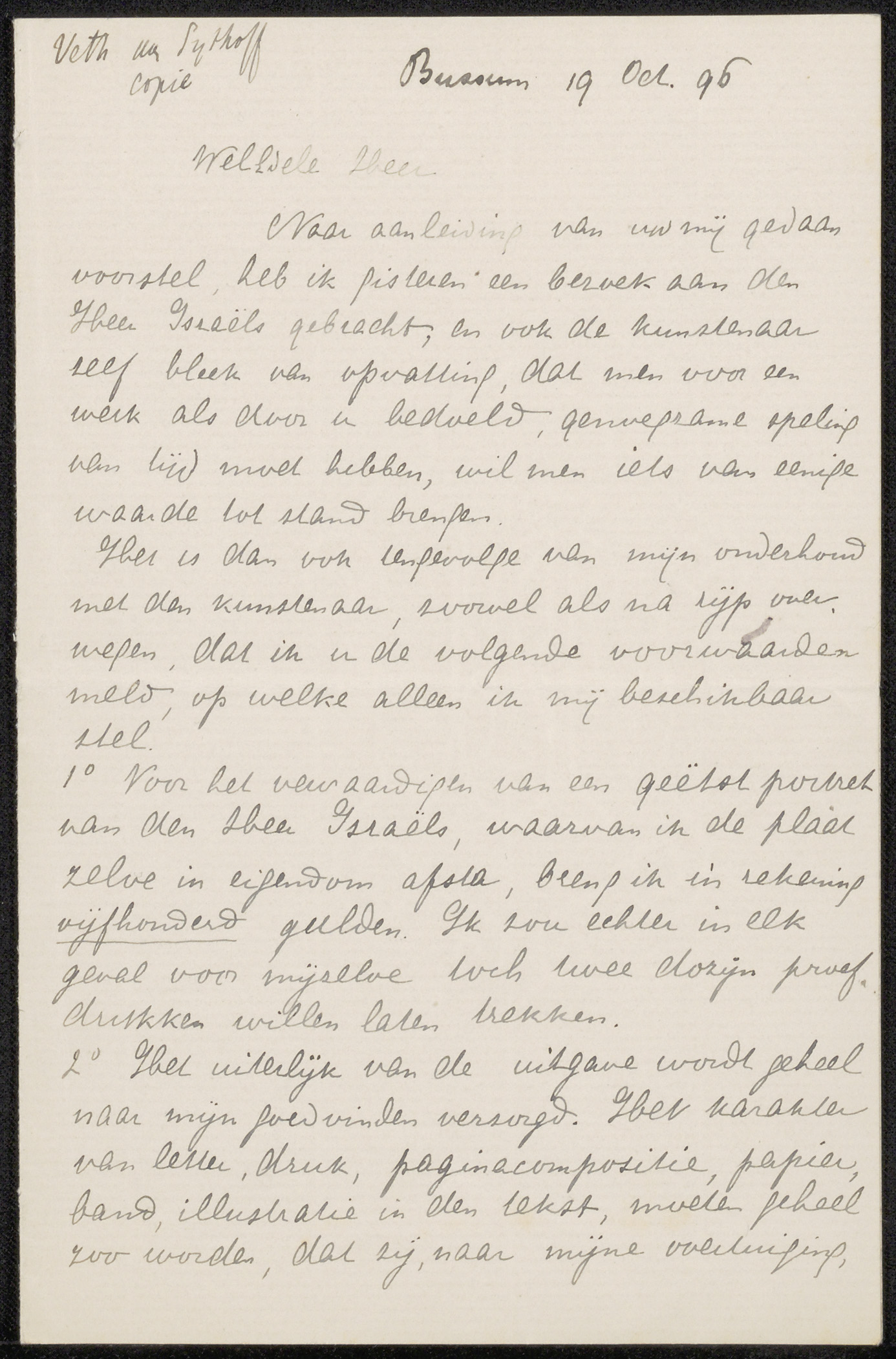 Kopiebrief van Jan Veth aan Lodewijk van Deyssel