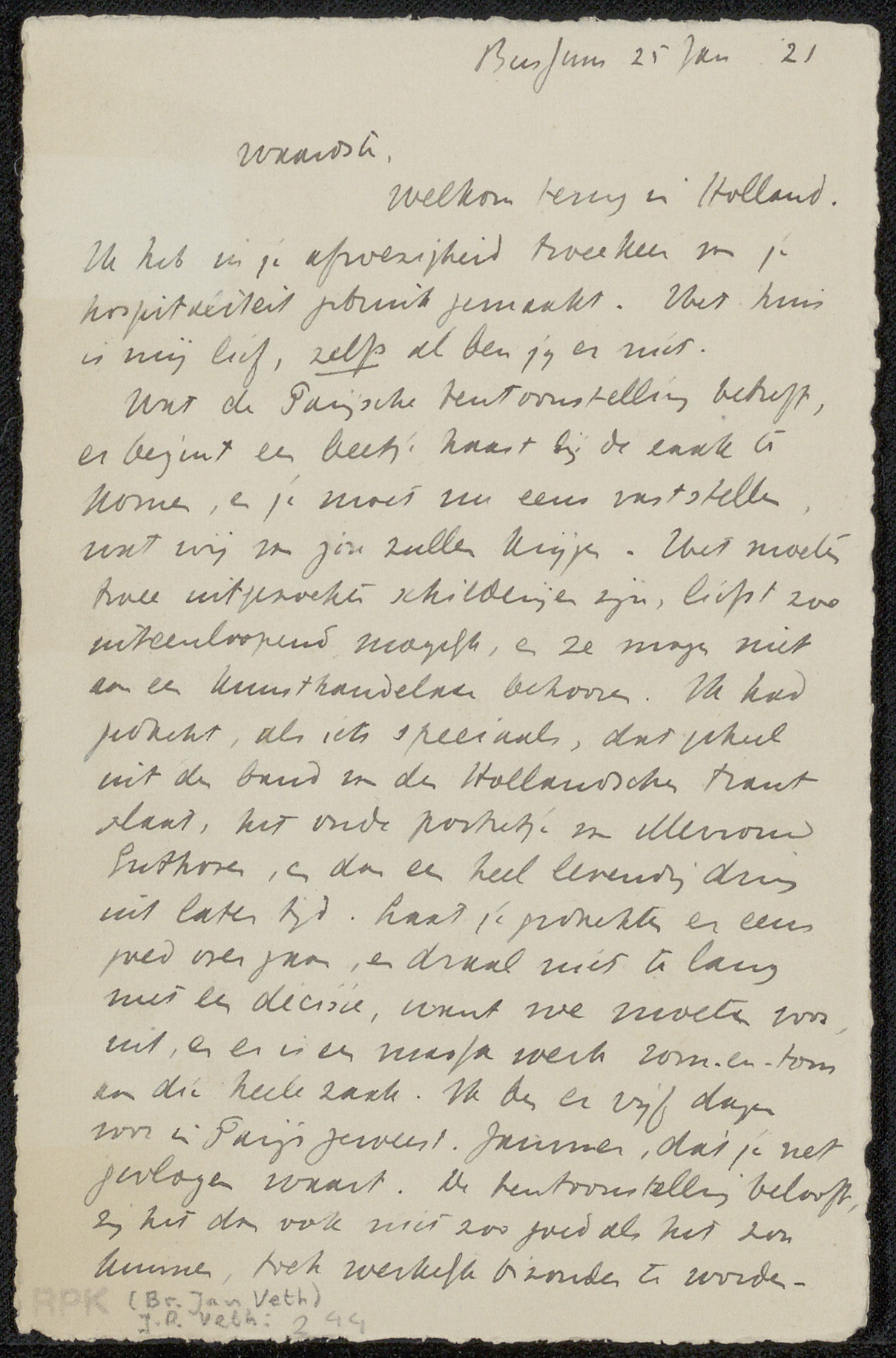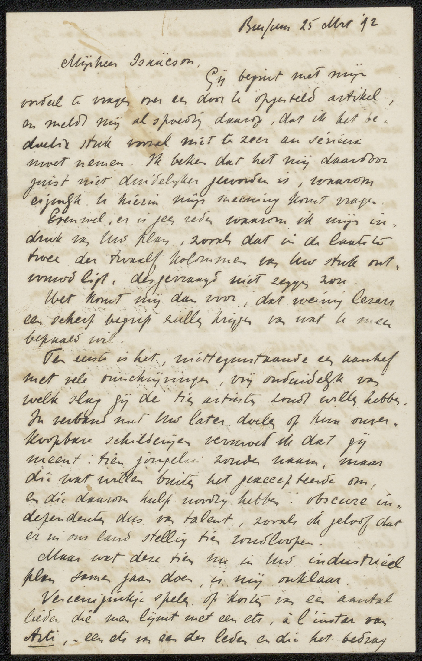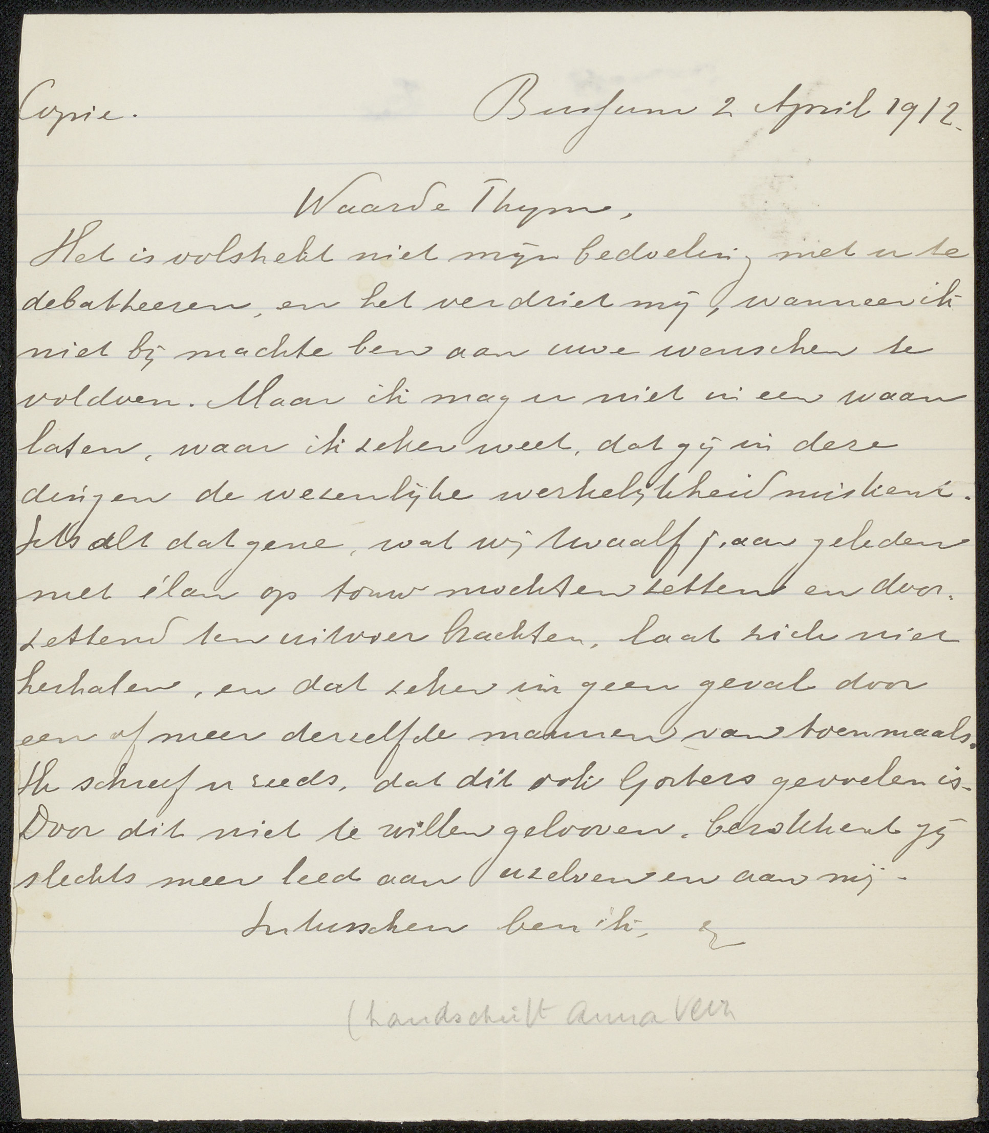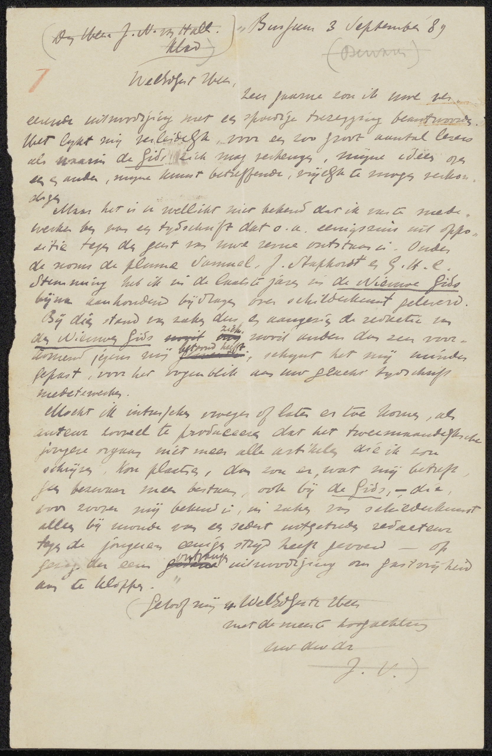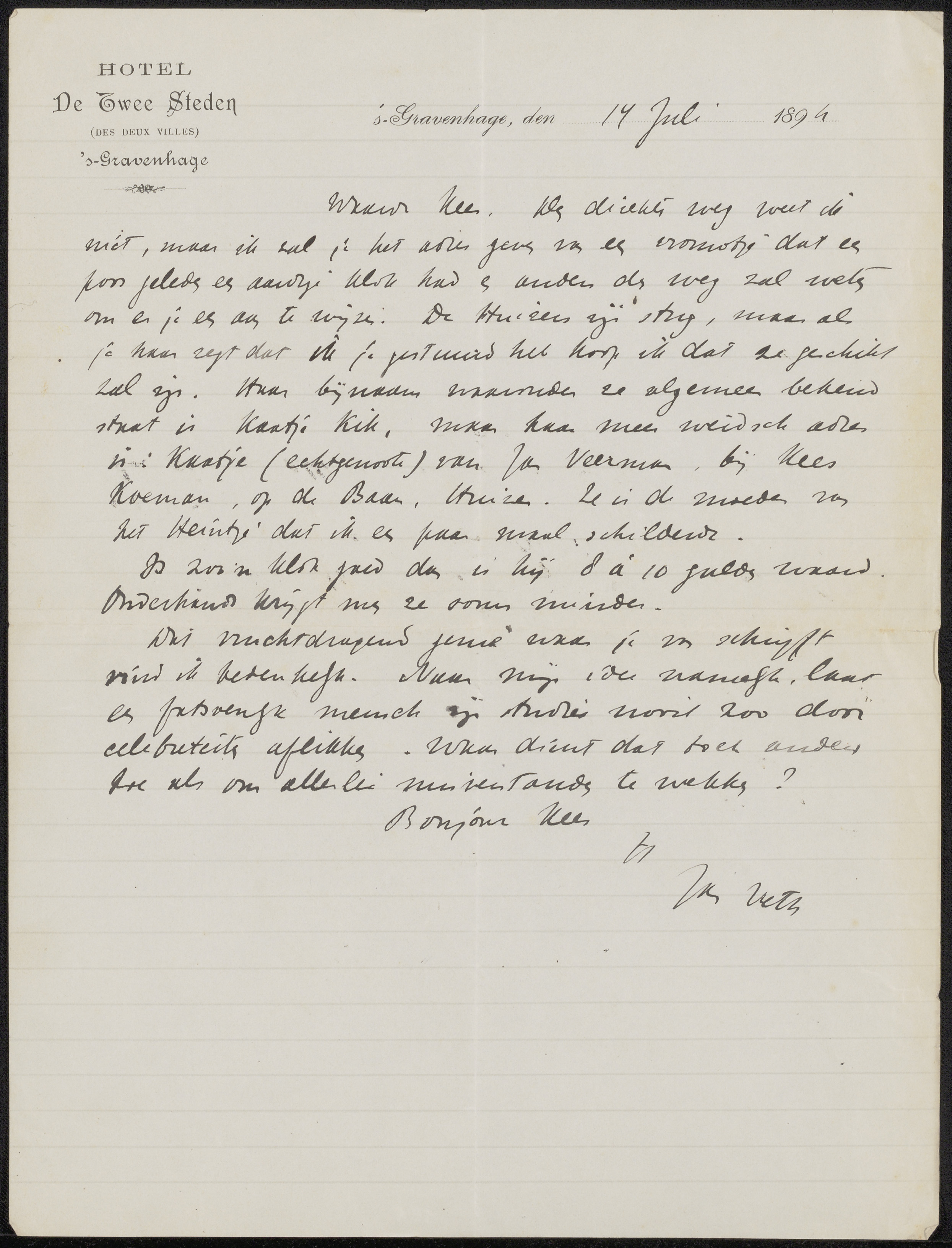 Kopiebrief van Jan Veth aan Lodewijk van Deyssel