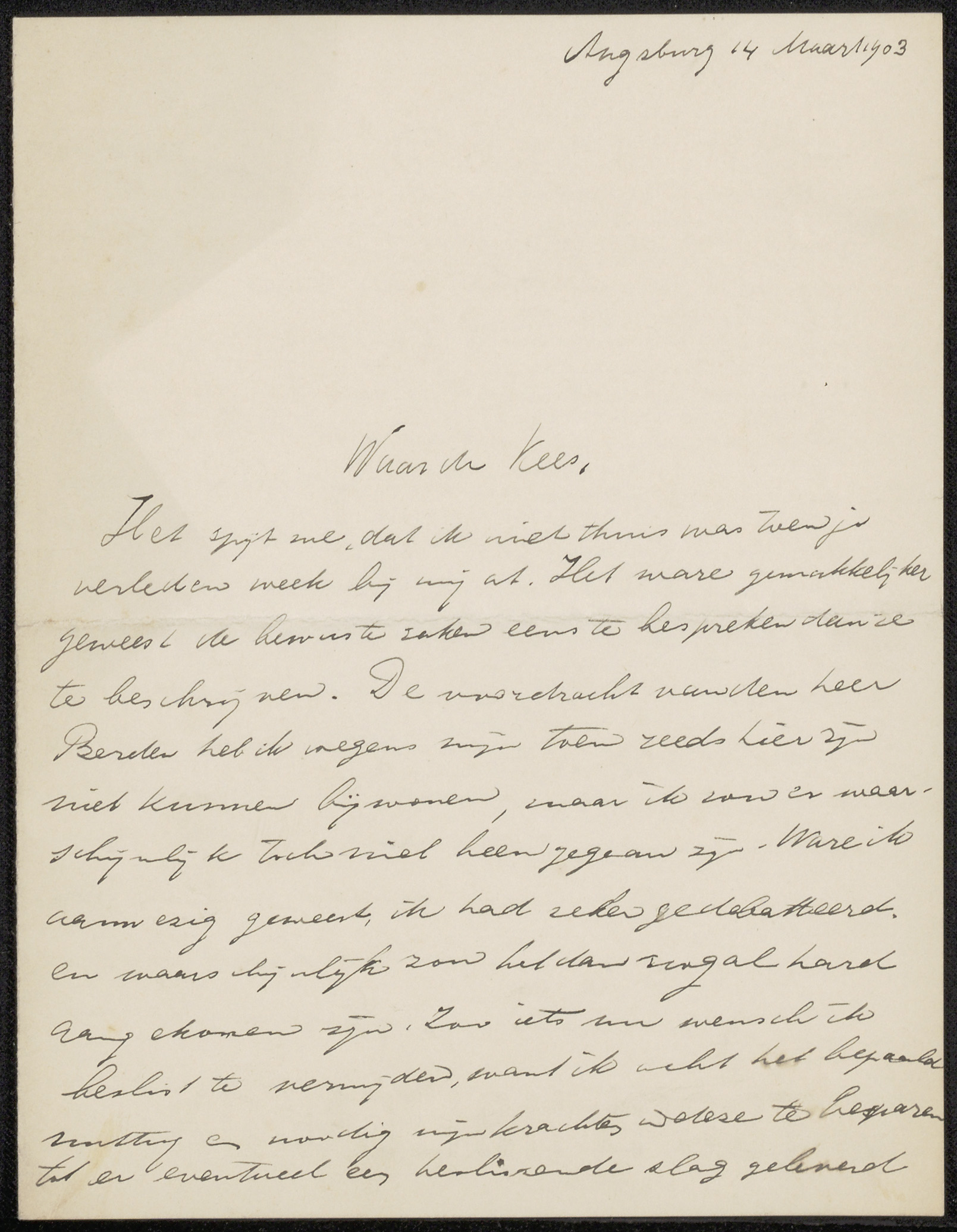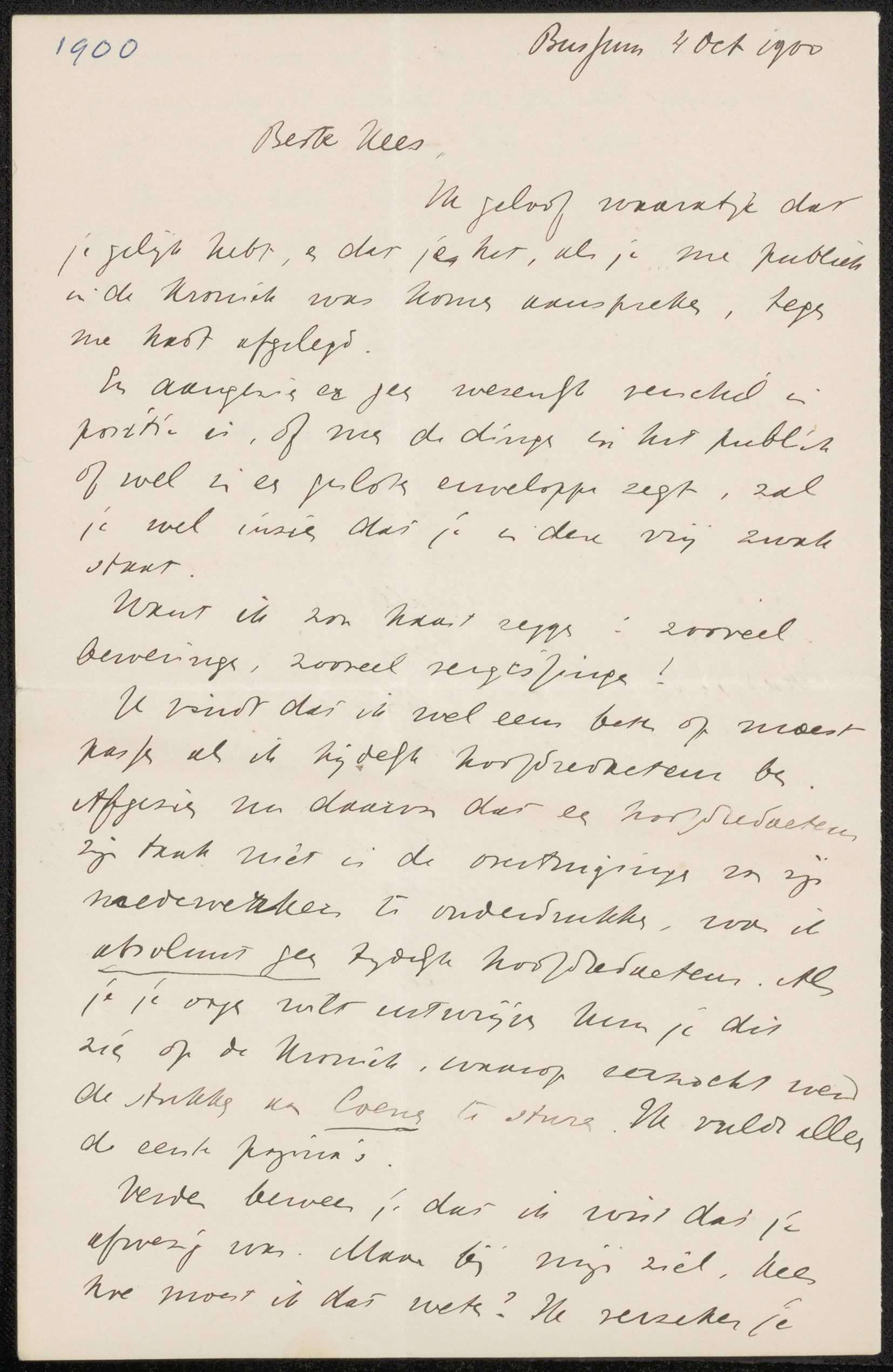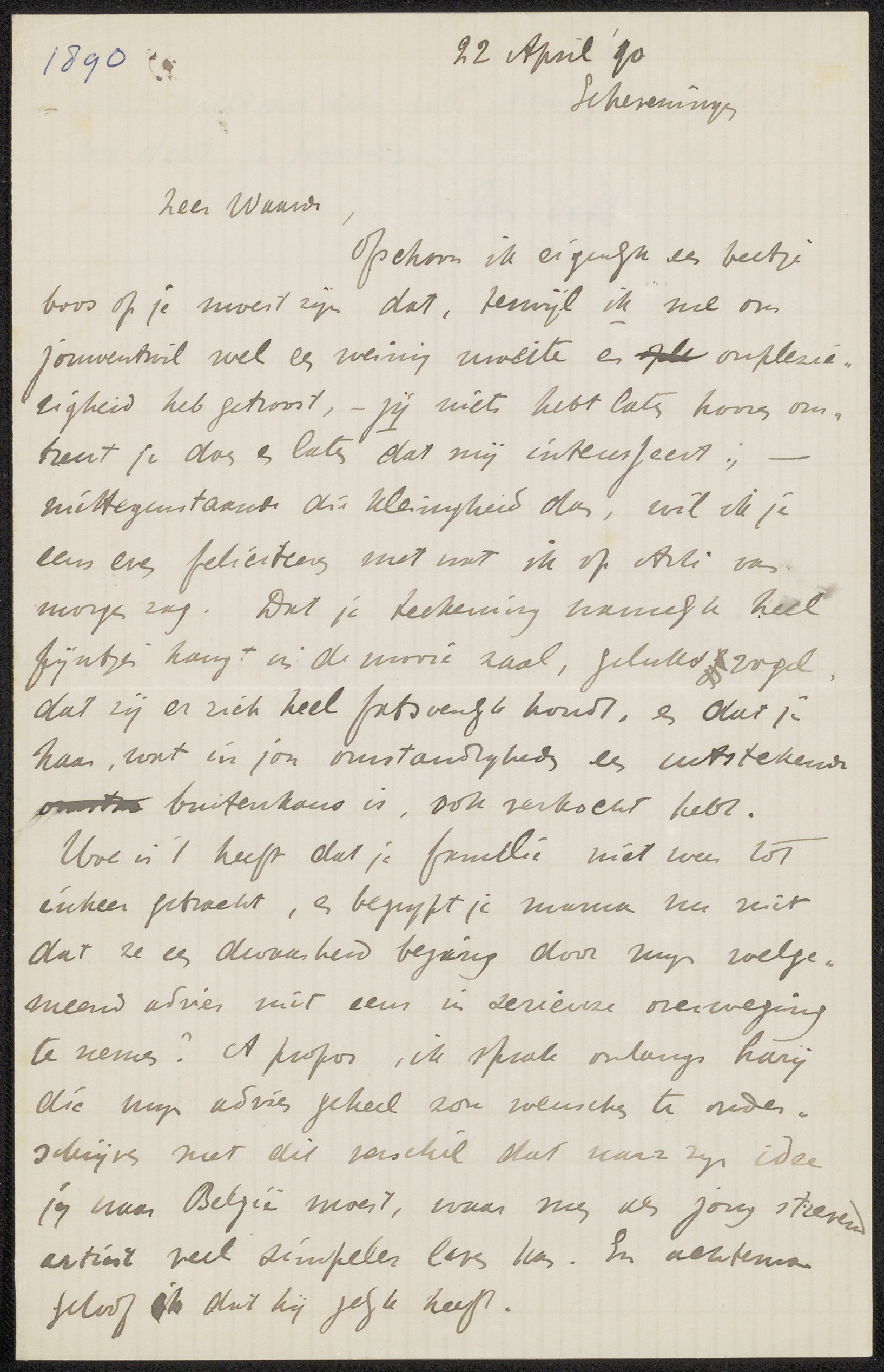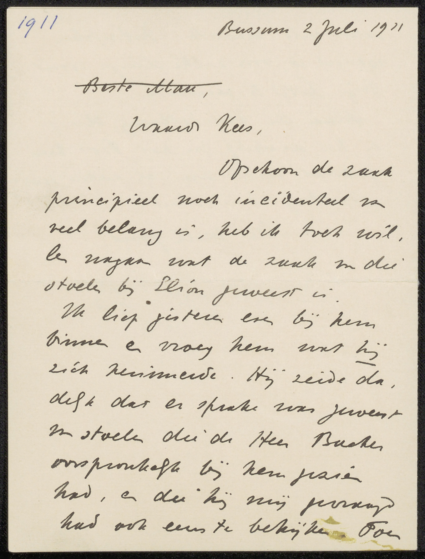 Kopiebrief van Jan Veth aan Lodewijk van Deyssel