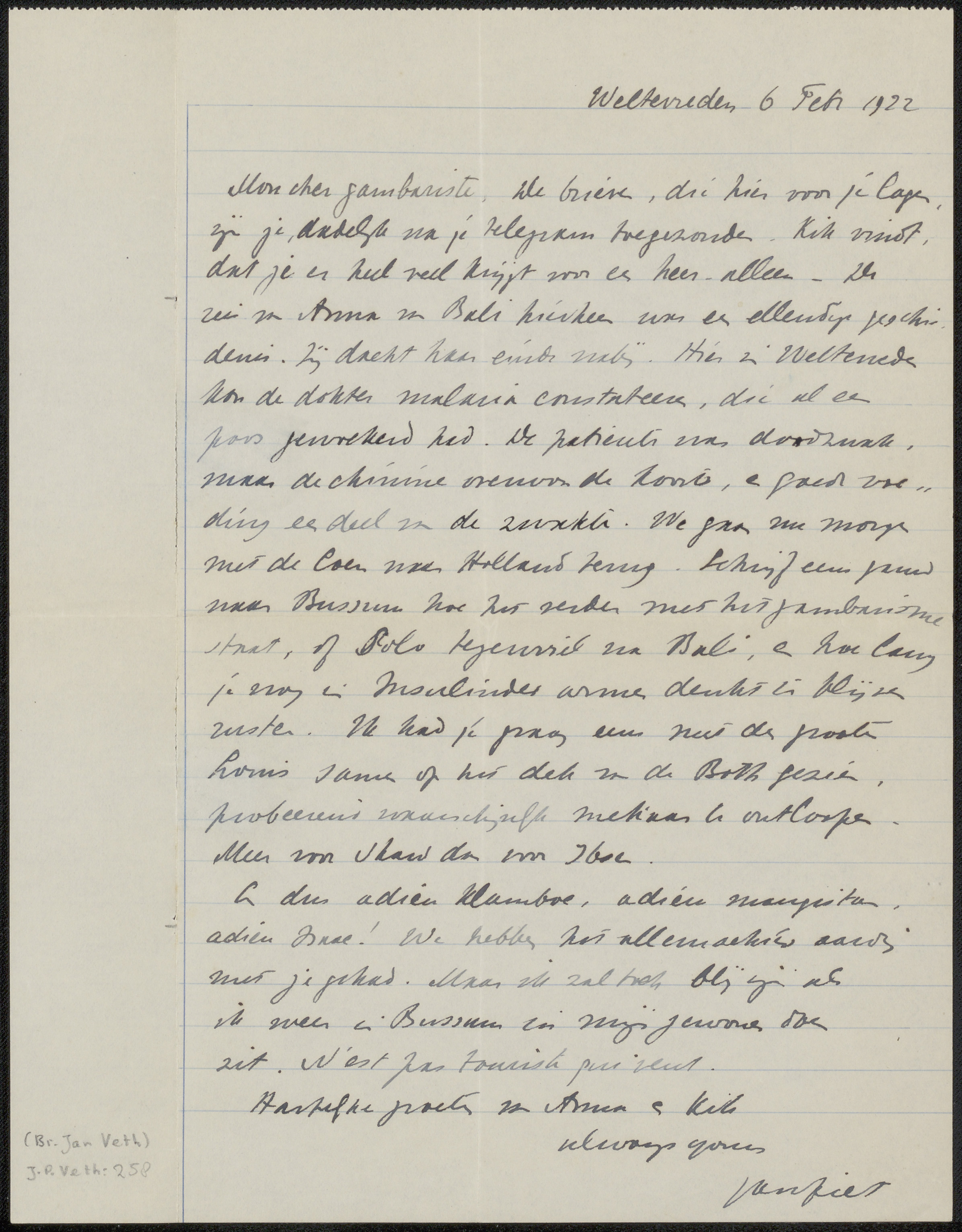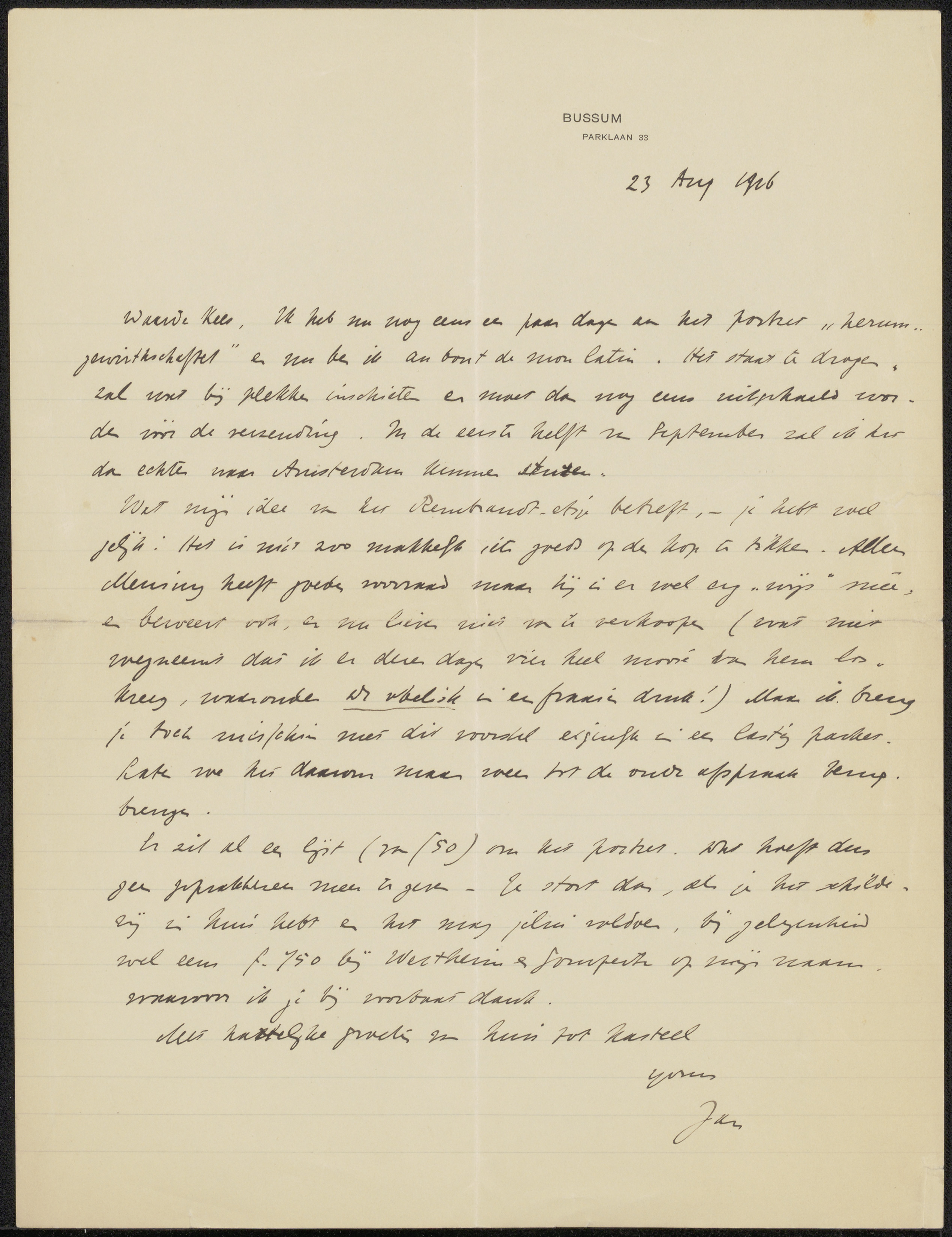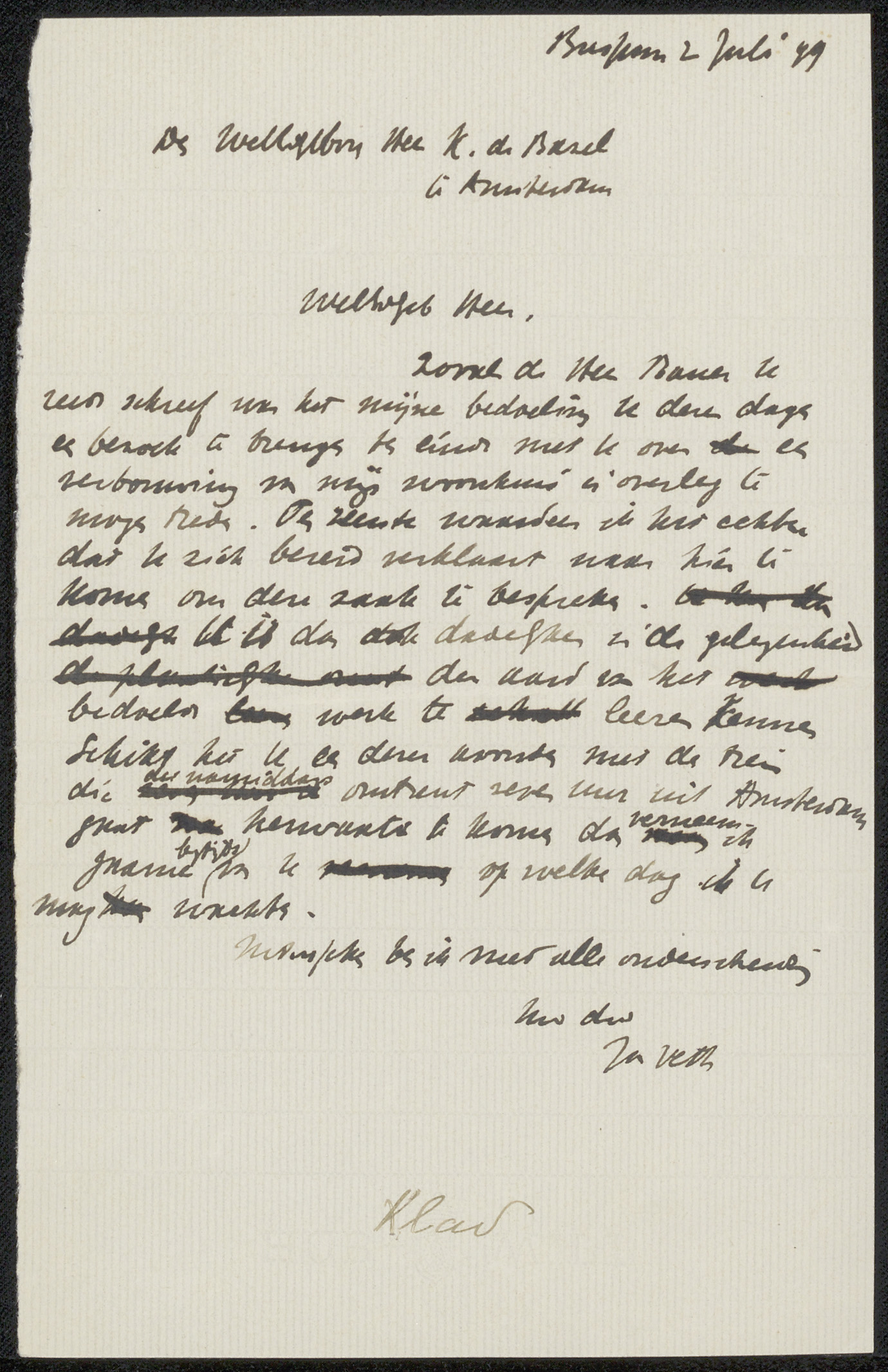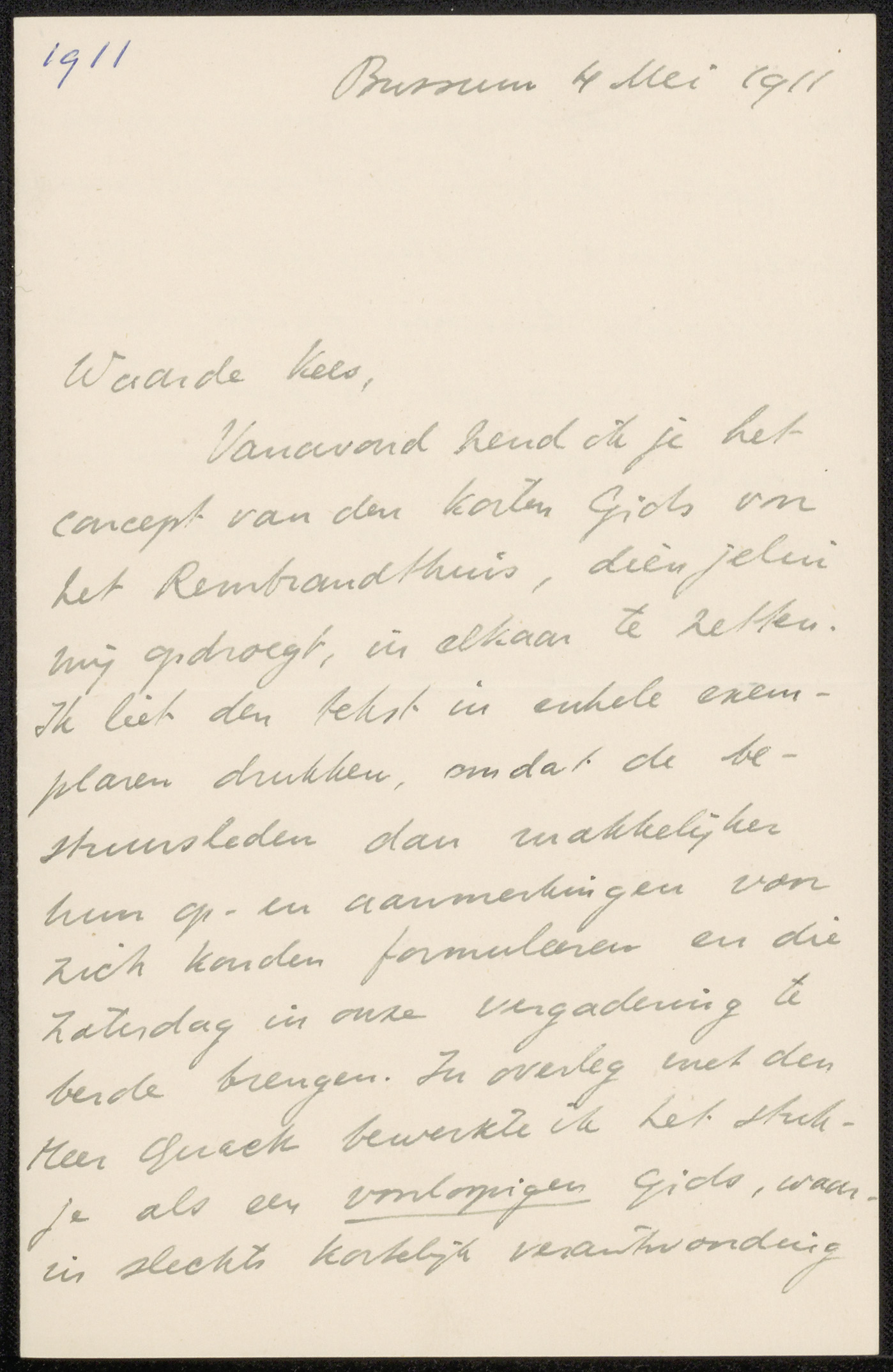Brief aan Wibbina Maria Korteweg-d'Aulnis de Bourrouil