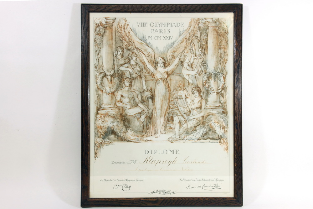 Olympisch deelnemersdiploma zwemster Truus Klapwijk ...