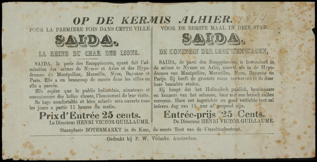 Saida, de Koningin der Leeuwenwagen. Folder Menageri...