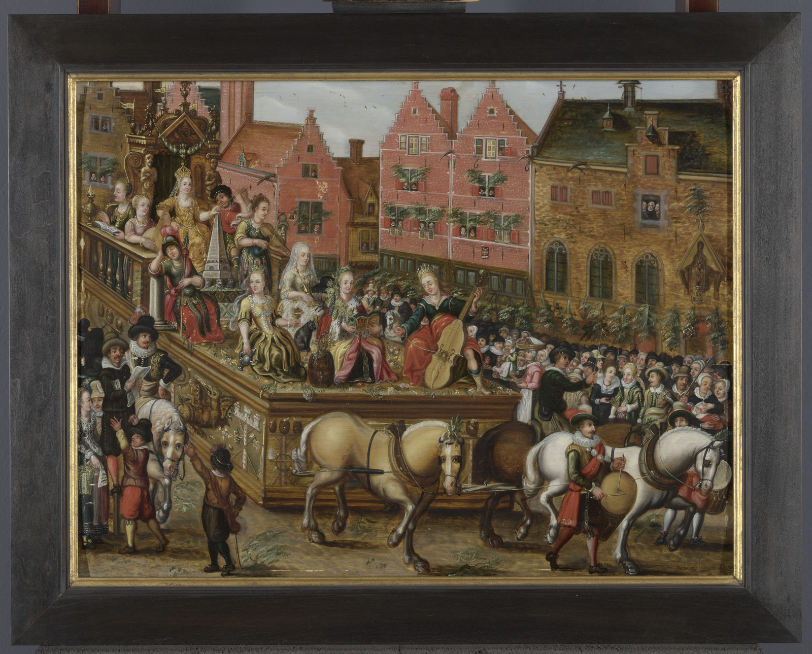 Praalwagen met opschrift Gloria Principes tijdens de...