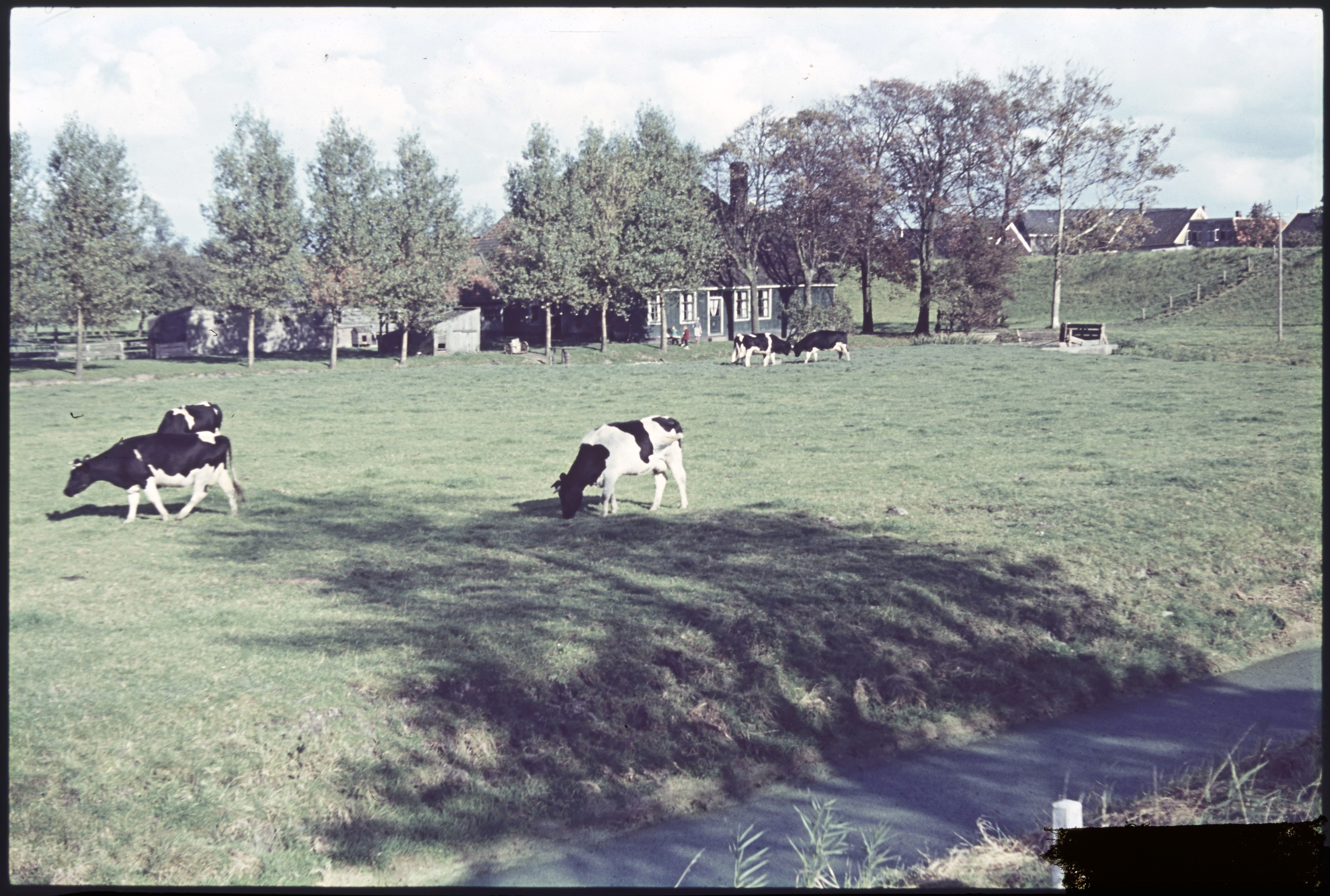 Landschap met woning en koeien
