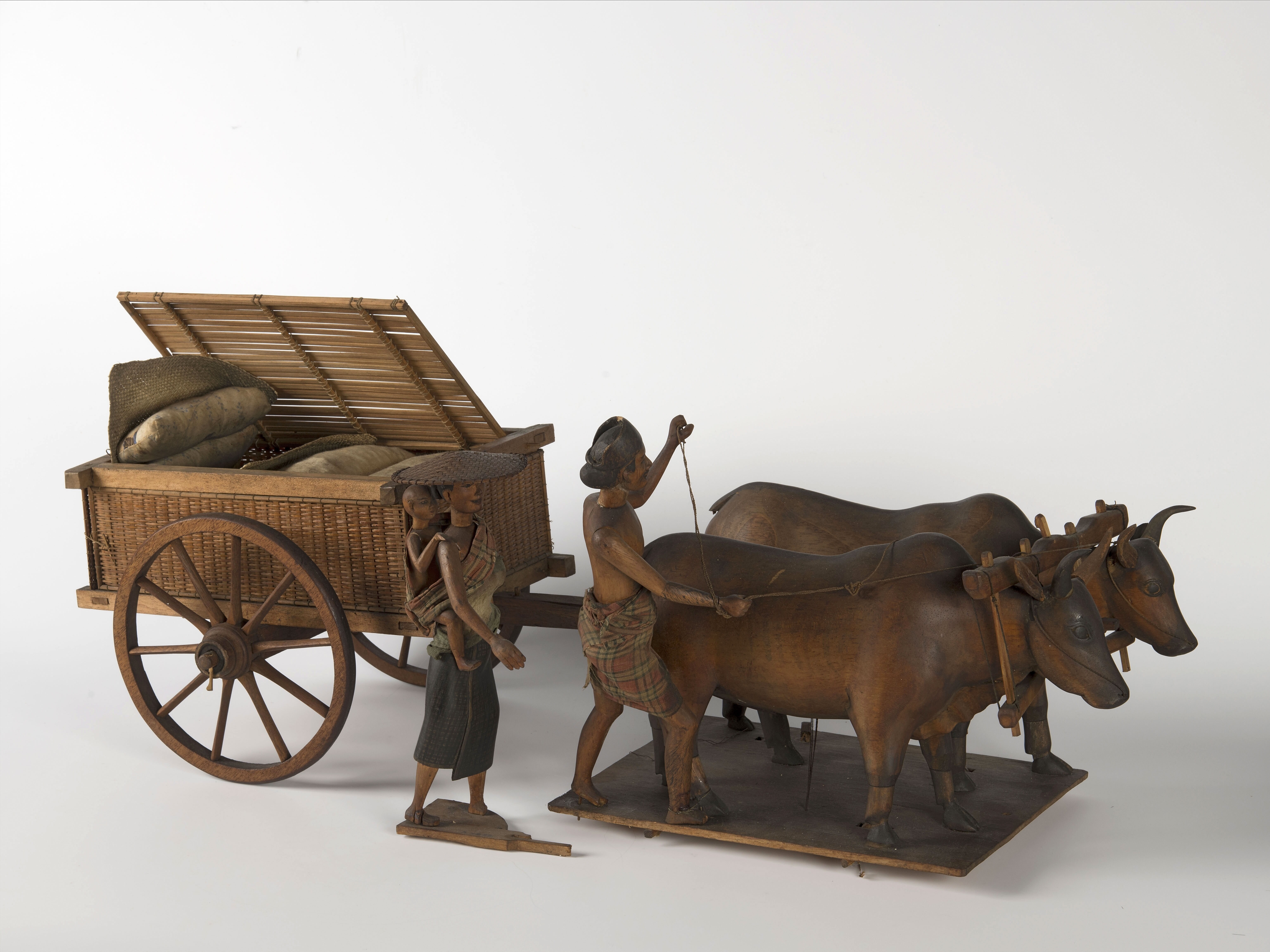 Model van een transportkar, met buffelspan en twee g...