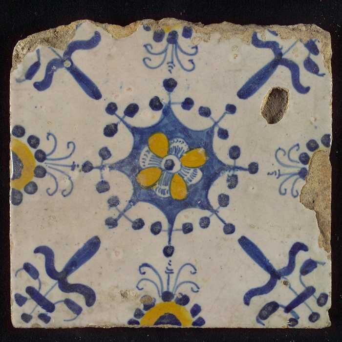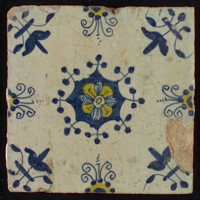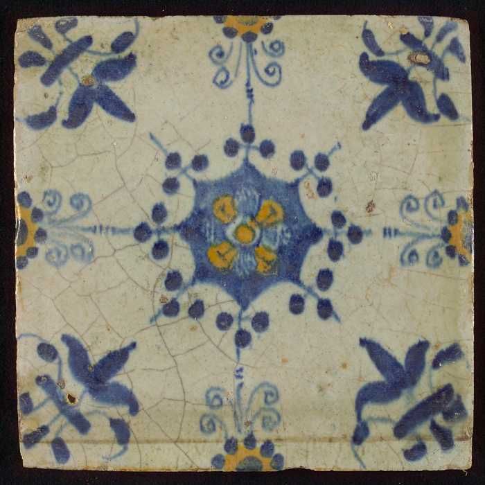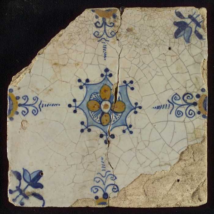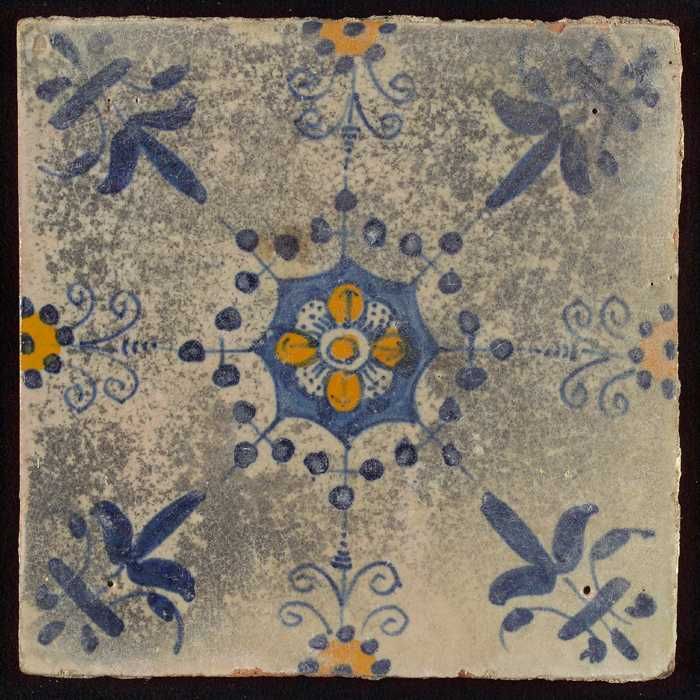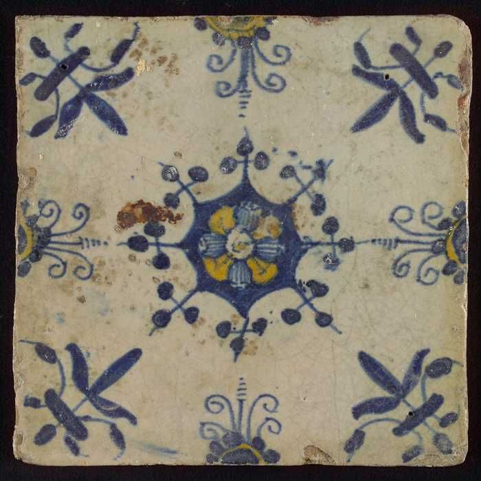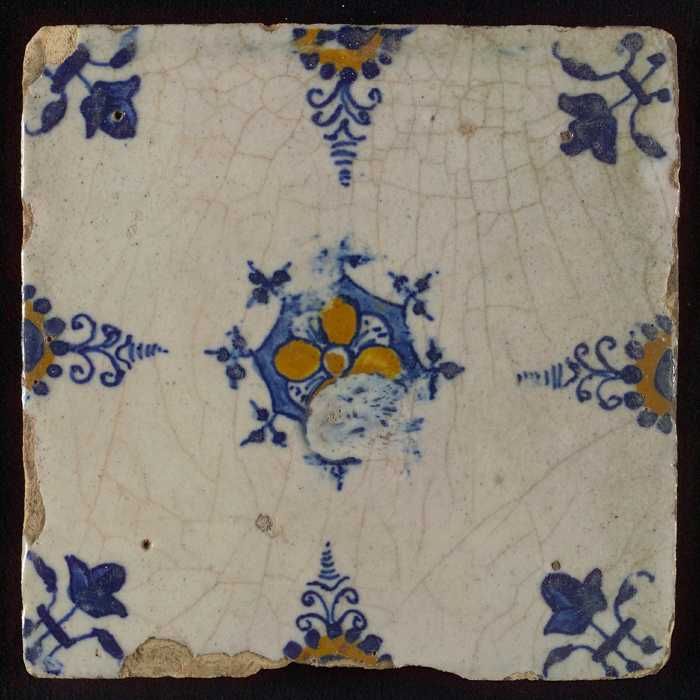 Ornamenttegel, blauwe trek, geel, groen en oranje op...