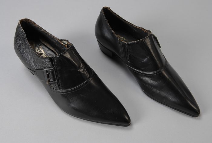 Zwart leren herenschoenen met puntneus en teruglopen...