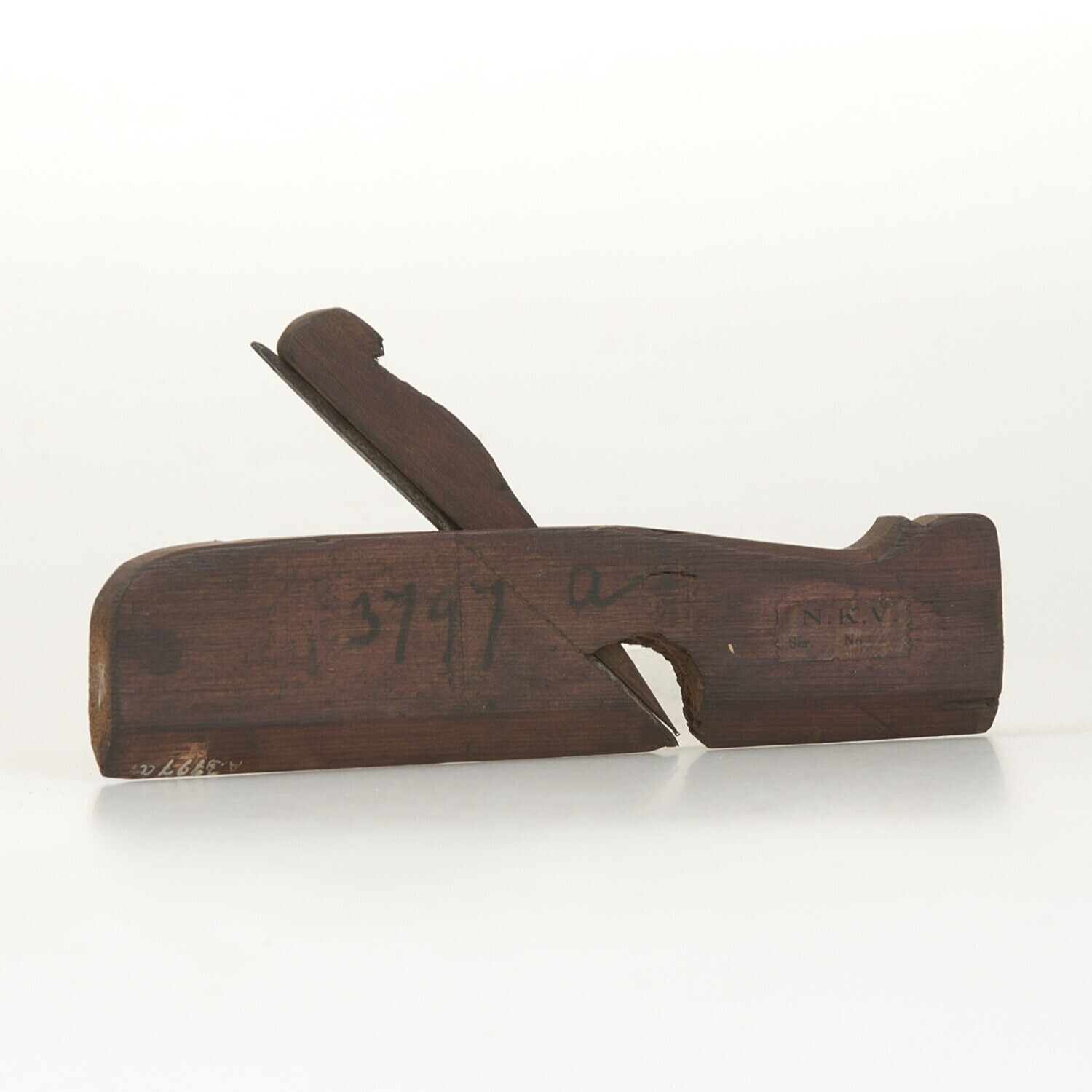 Driekante vijl van hout en ijzer