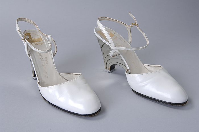 Witte schoenen met hakkenbandje, over de enkel sluit...