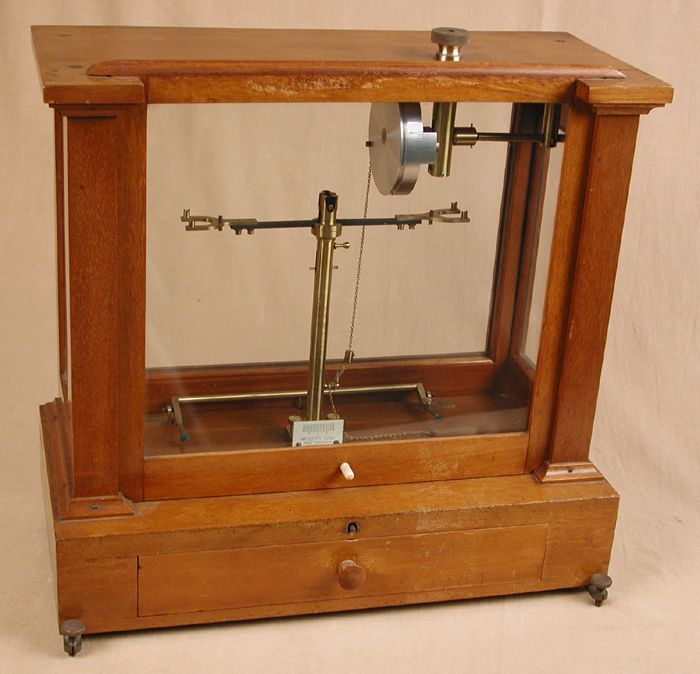 Gelijkarmige balans in kast, 20 gram, met losse lade...