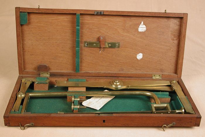 Meetinstrument in drie delen in houten doos, ten beh...