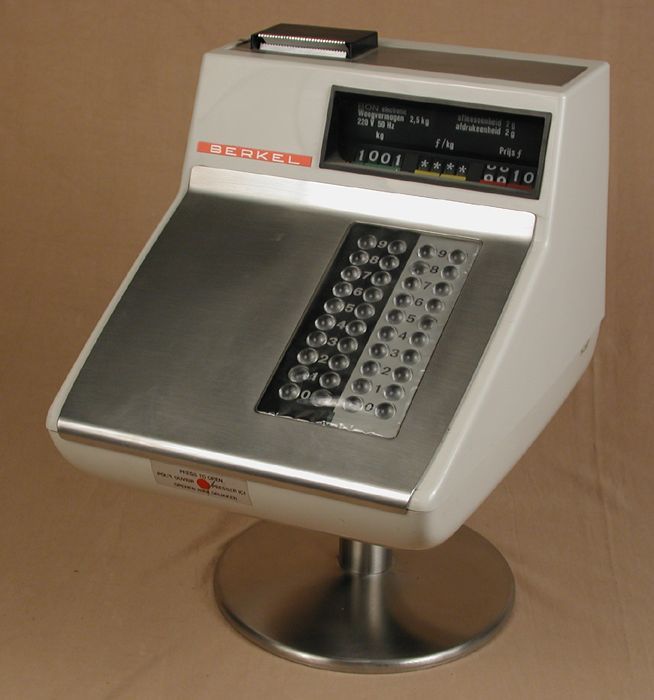 Elektronische weegschaal (B) met metalen bovenblad (C)
