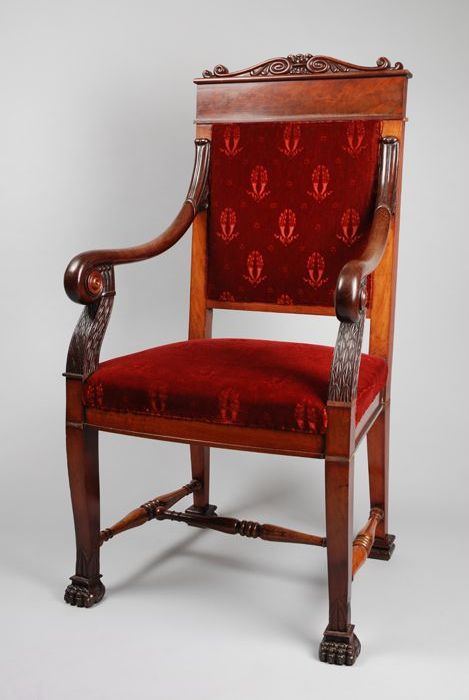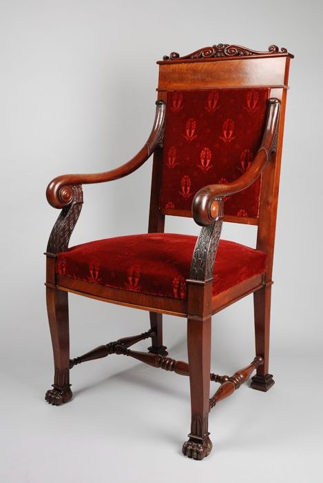 Mahoniehouten armstoel in late Empire stijl