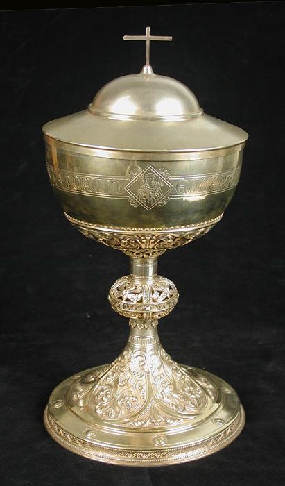 Verguld zilveren ciborie "ECCE PANIS ANGELORUM FACTU...