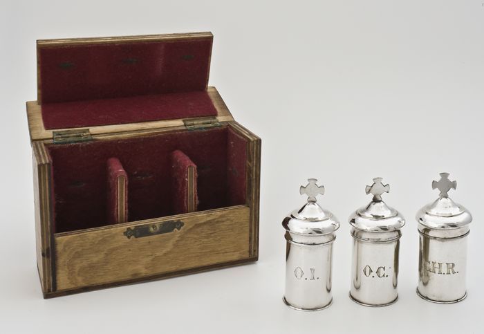 Koper verzilverde reliekhouder "St. Petrus Mart."