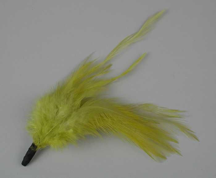 Veren hoedendecoratie of corsage, felgele veertjes b...
