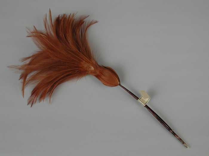 Veren hoedendecoratie of corsage, toefje maraboe 'ha...