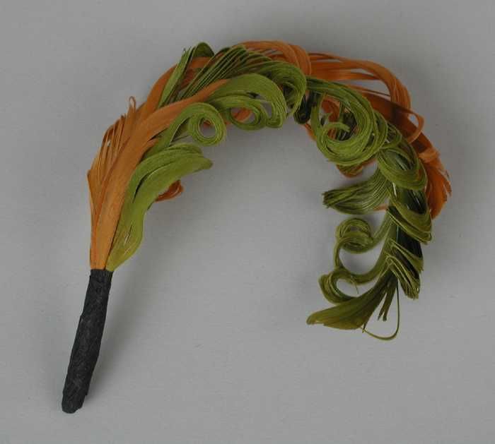 Veren hoedendecoratie of corsage, groene en oranje v...