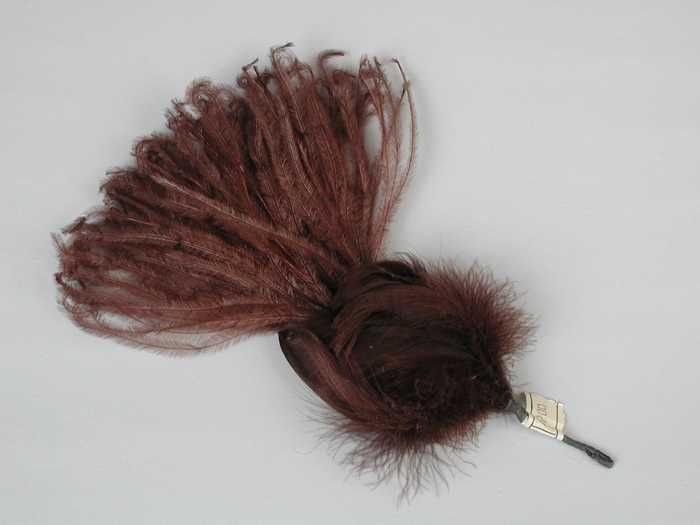 Veren hoedendecoratie of corsage, toefje bruine vere...