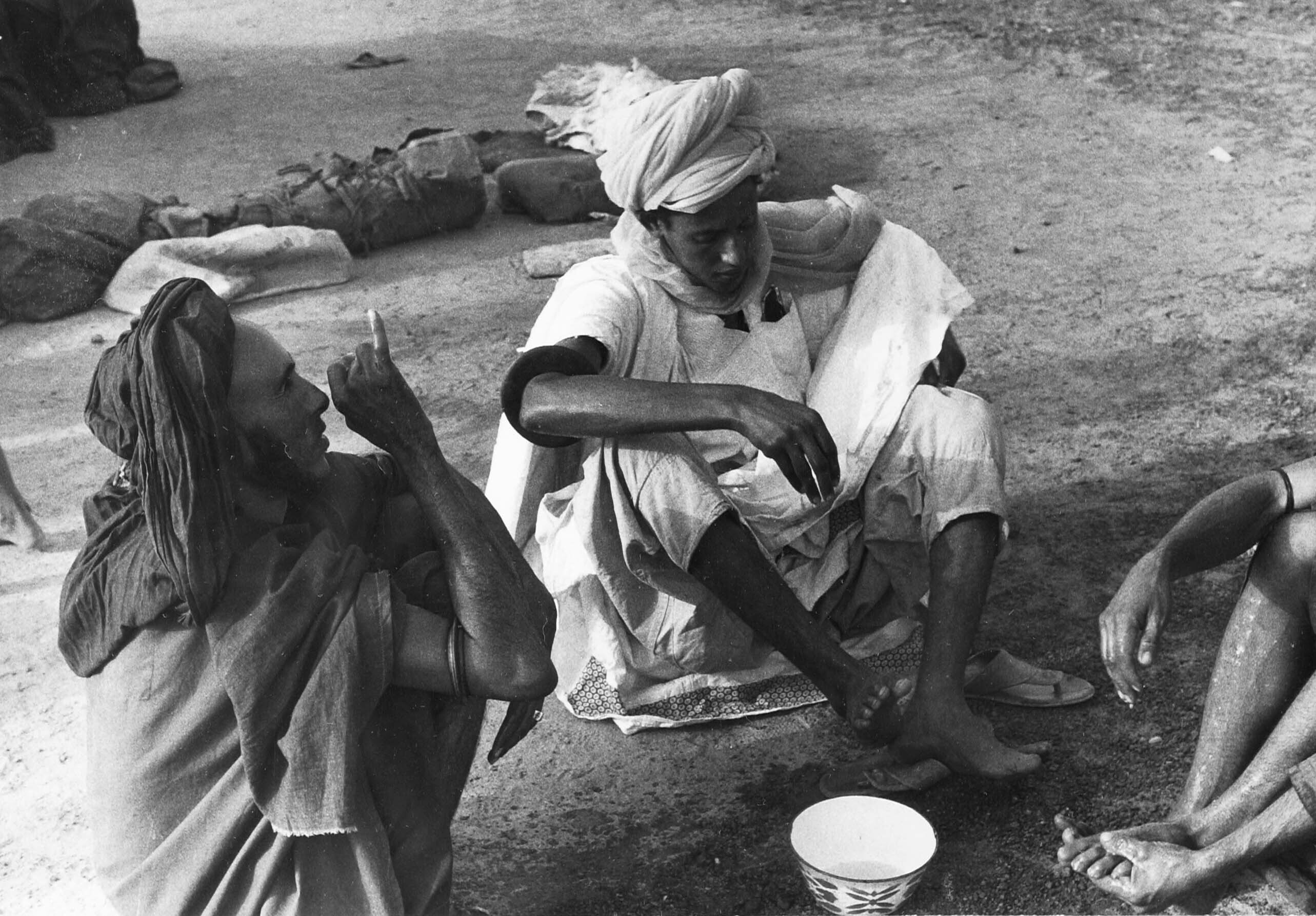 Tuareg tijdens het verrichten van de rituele wassing...